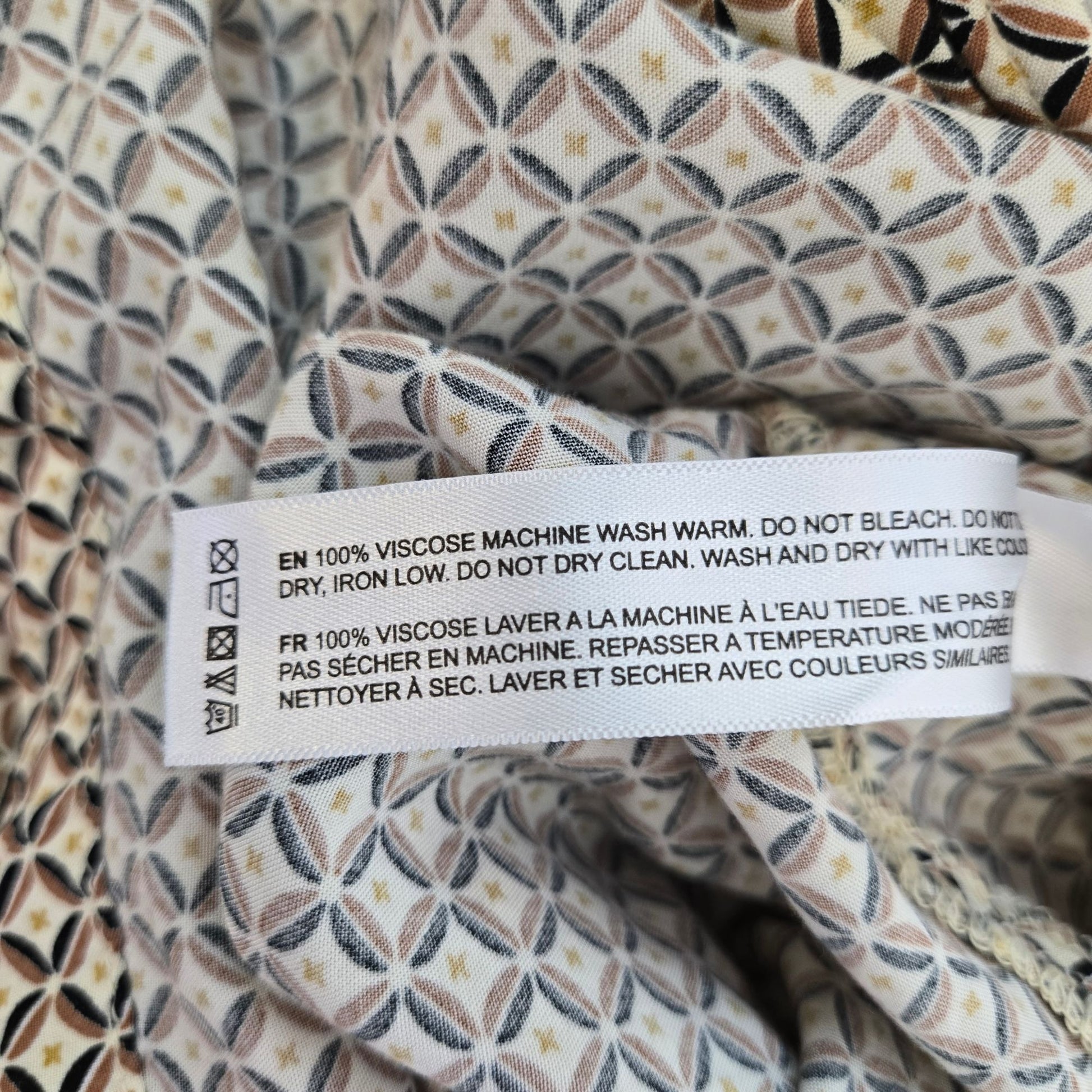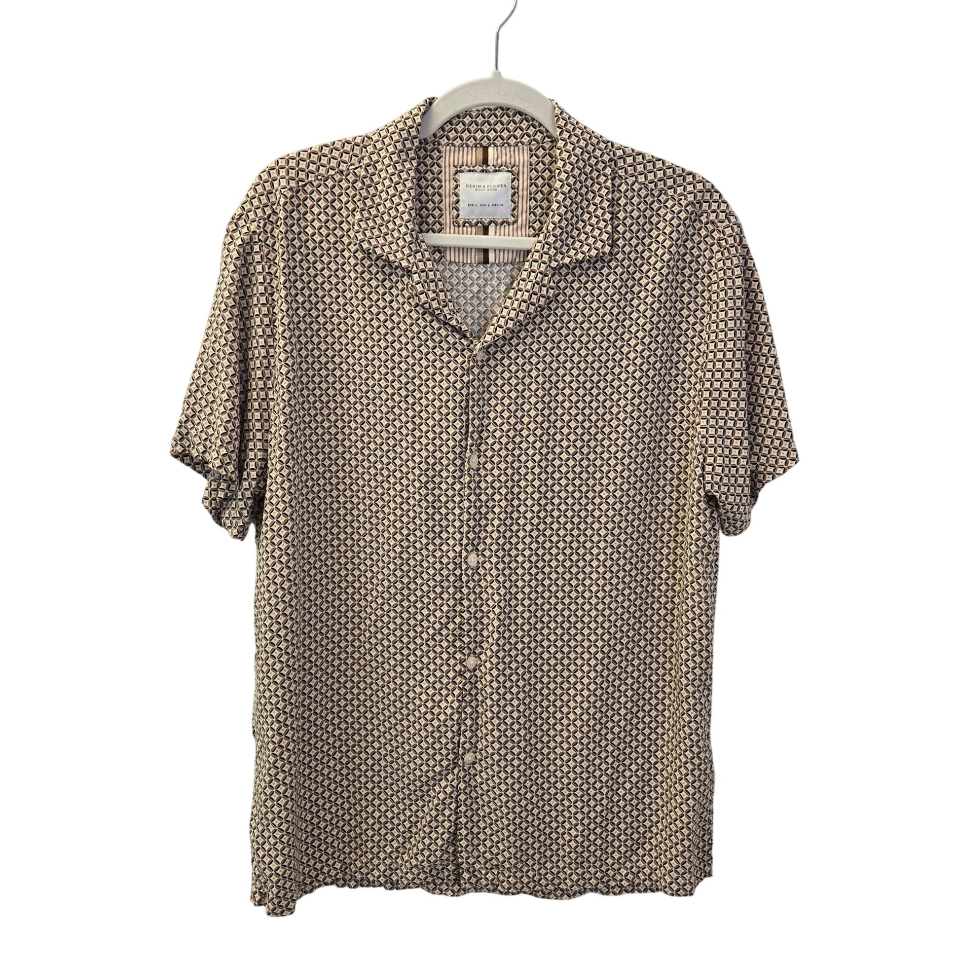 Denim & Flower Ricky Singh 100% Viscose Diamond Print Button Down Shirt Size Large