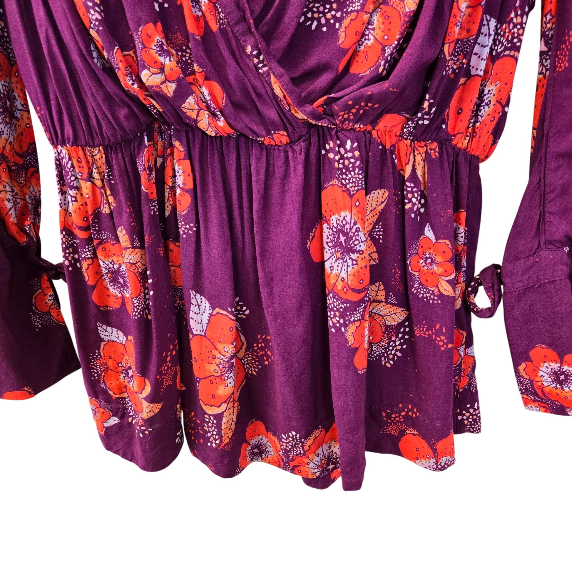 Free People Tuscan Dreams 100% Viscose Tunic Wrap Blouse Size Small