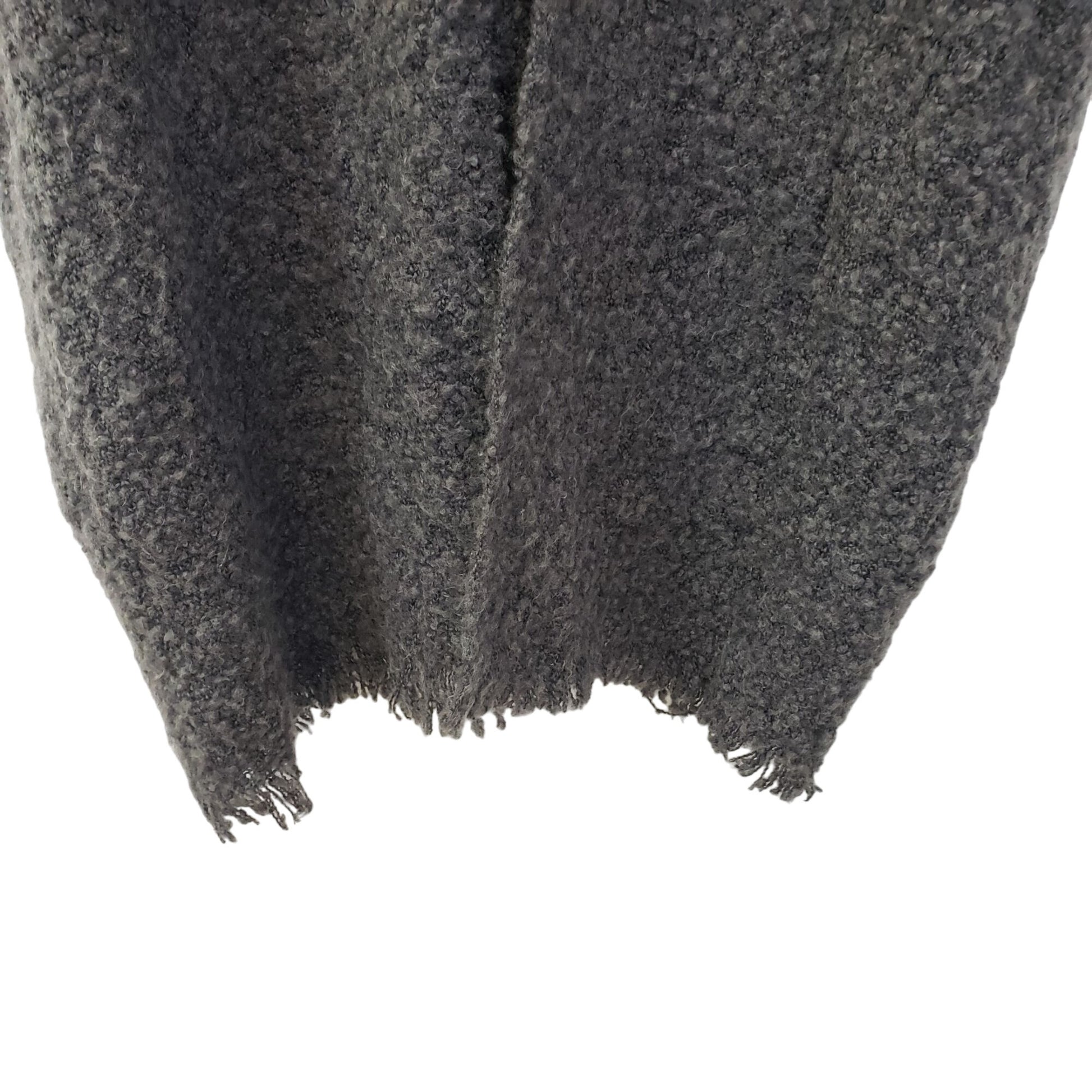 Longline poncho sweater that has a marled texture and fringe trim at the bottom. This does have arm holes and is an open style. Great layering piece when it is cold in lieu of a jacket.