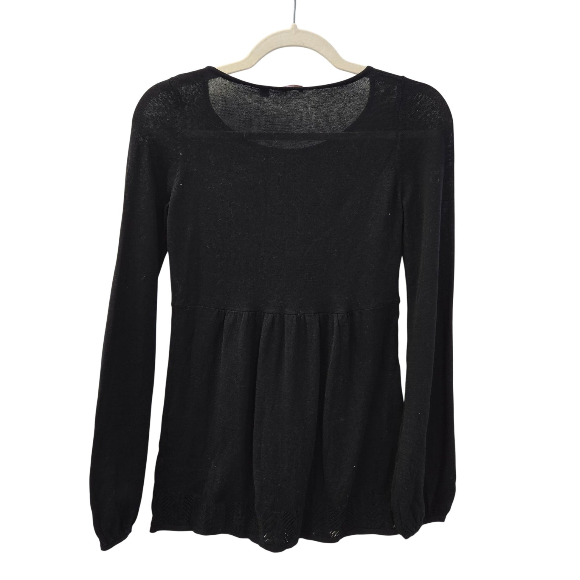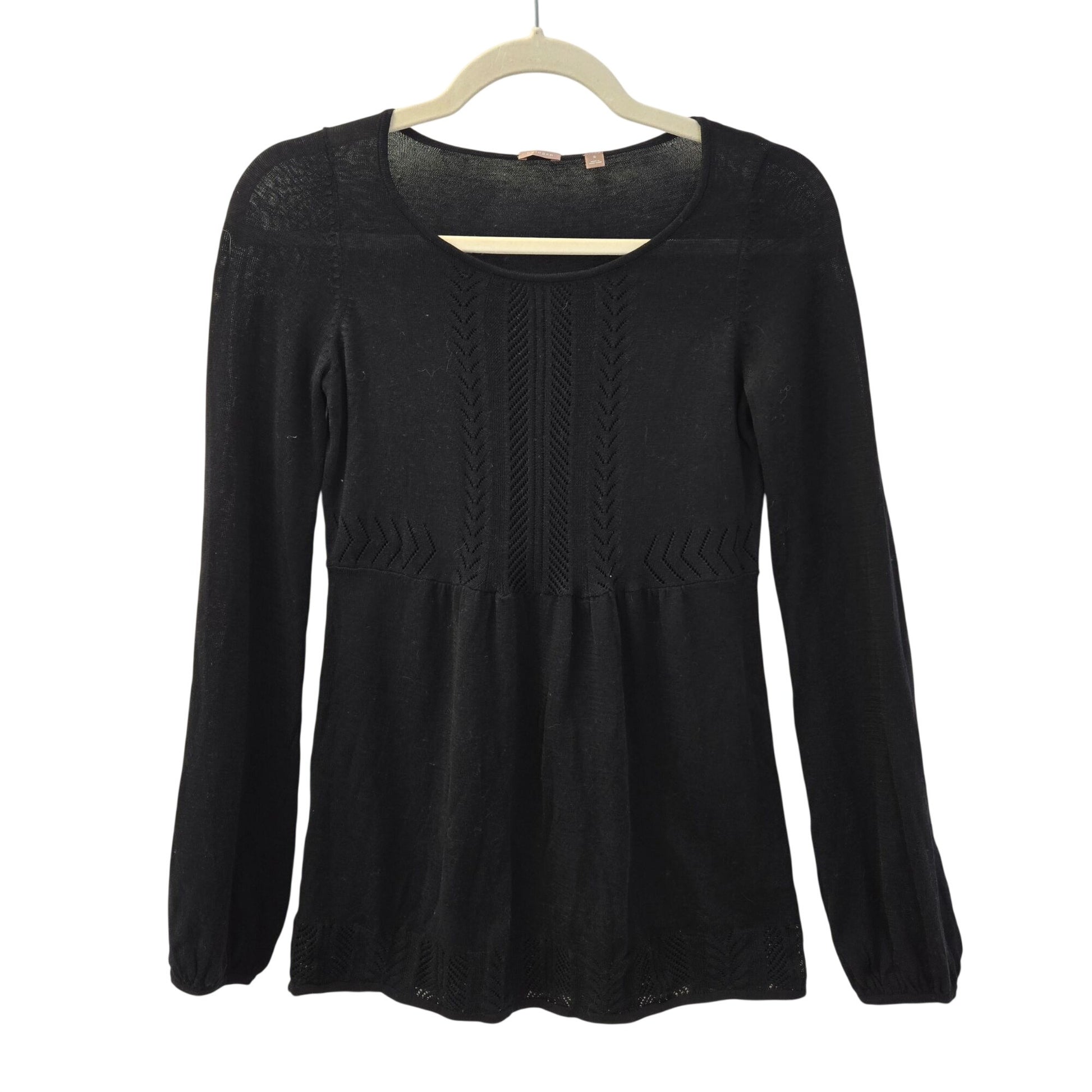 Halogen Cotton Peplum Bell Sleeve Crochet Detail Sweater Size Small