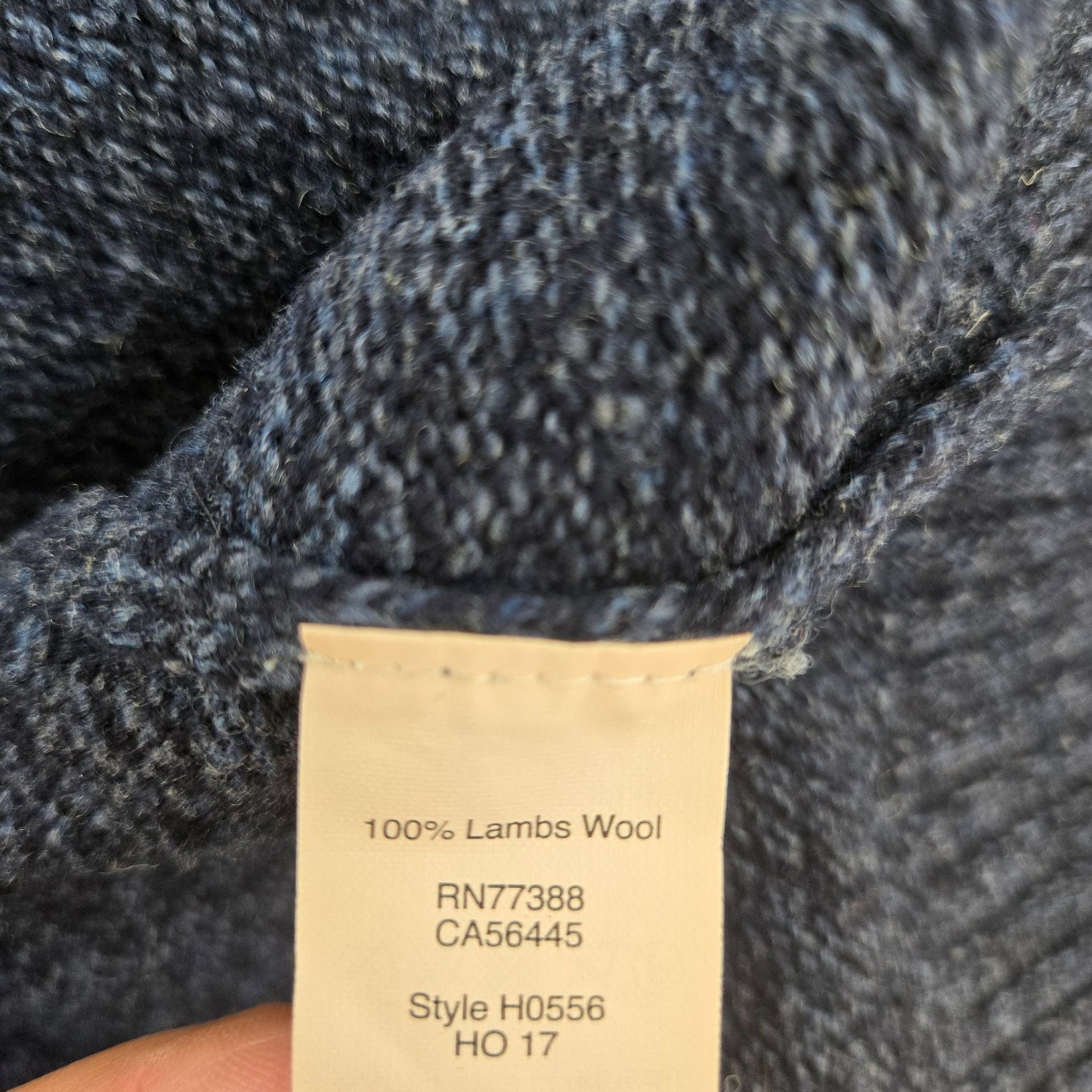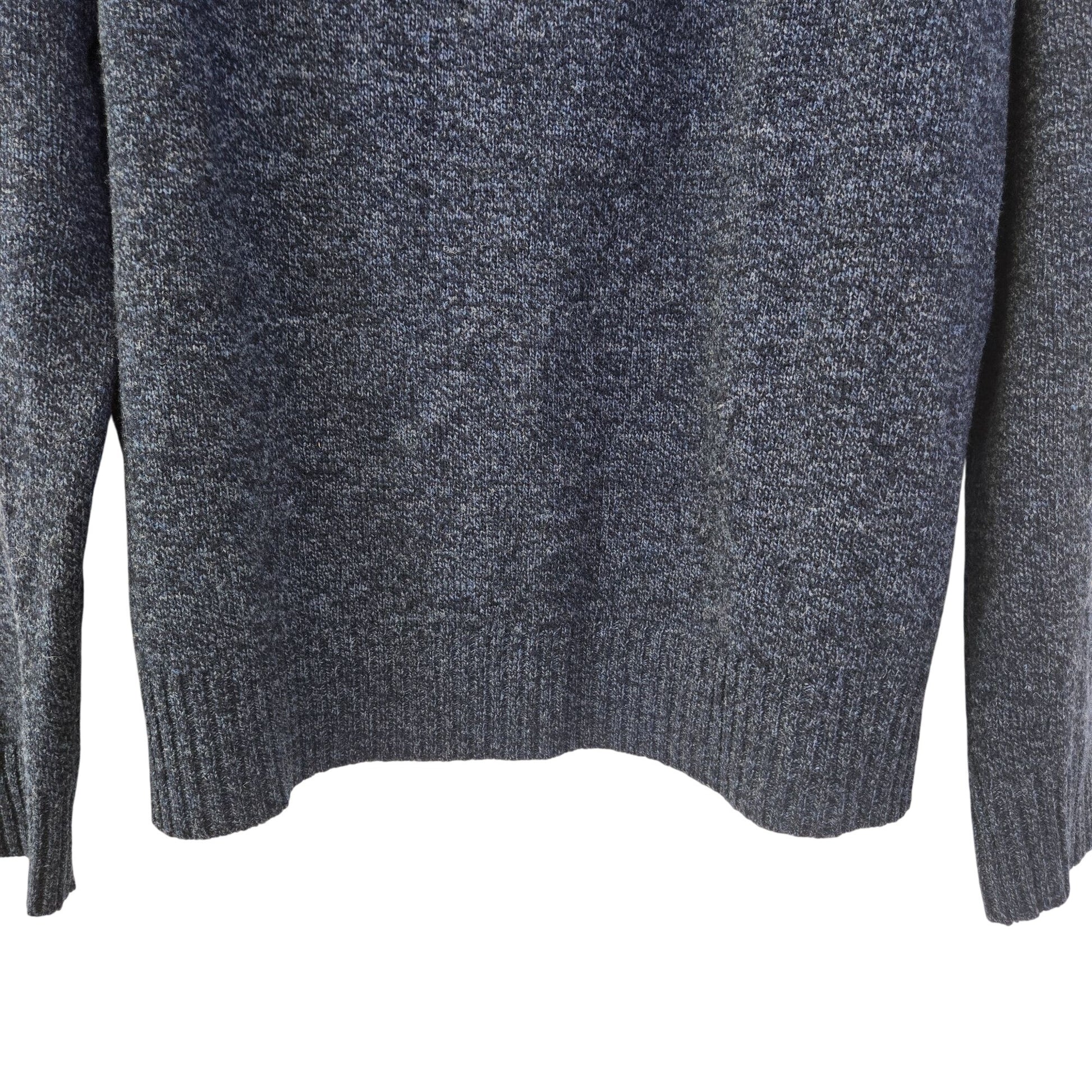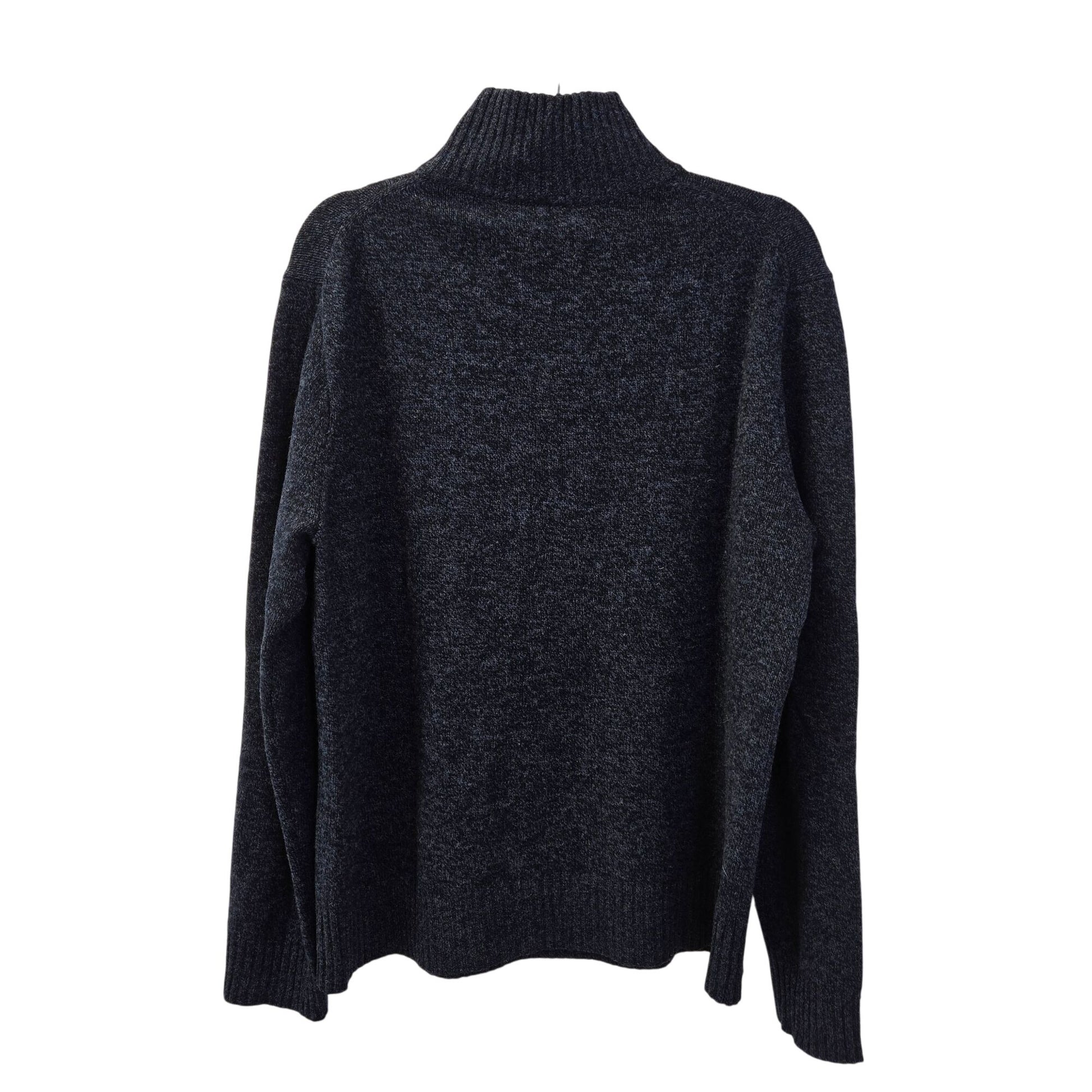 Really nice heathered blue lambswool sweater that has a quarter zip closure with high collar. Pair with dress pants or jeans.