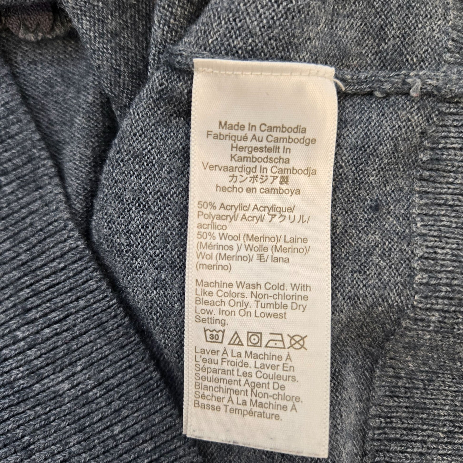 Really nice lightweight quarter zip high collar wool blend sweater that is great to layer with a t-shirt or a button down shirt. The color is a bluish-gray.