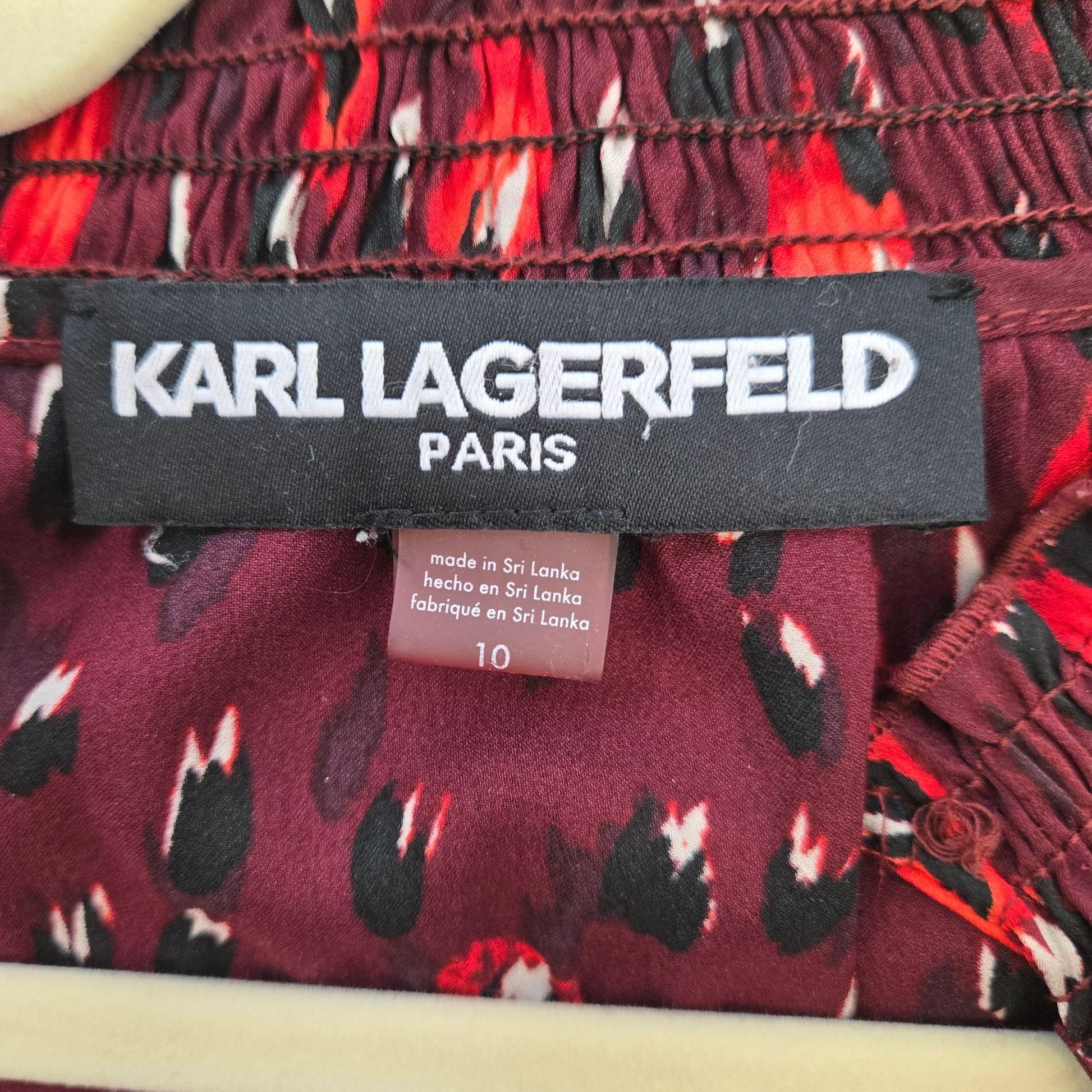 Karl Lagerfeld Watercolor Animal Print Smocked Waist Dress Size 10
