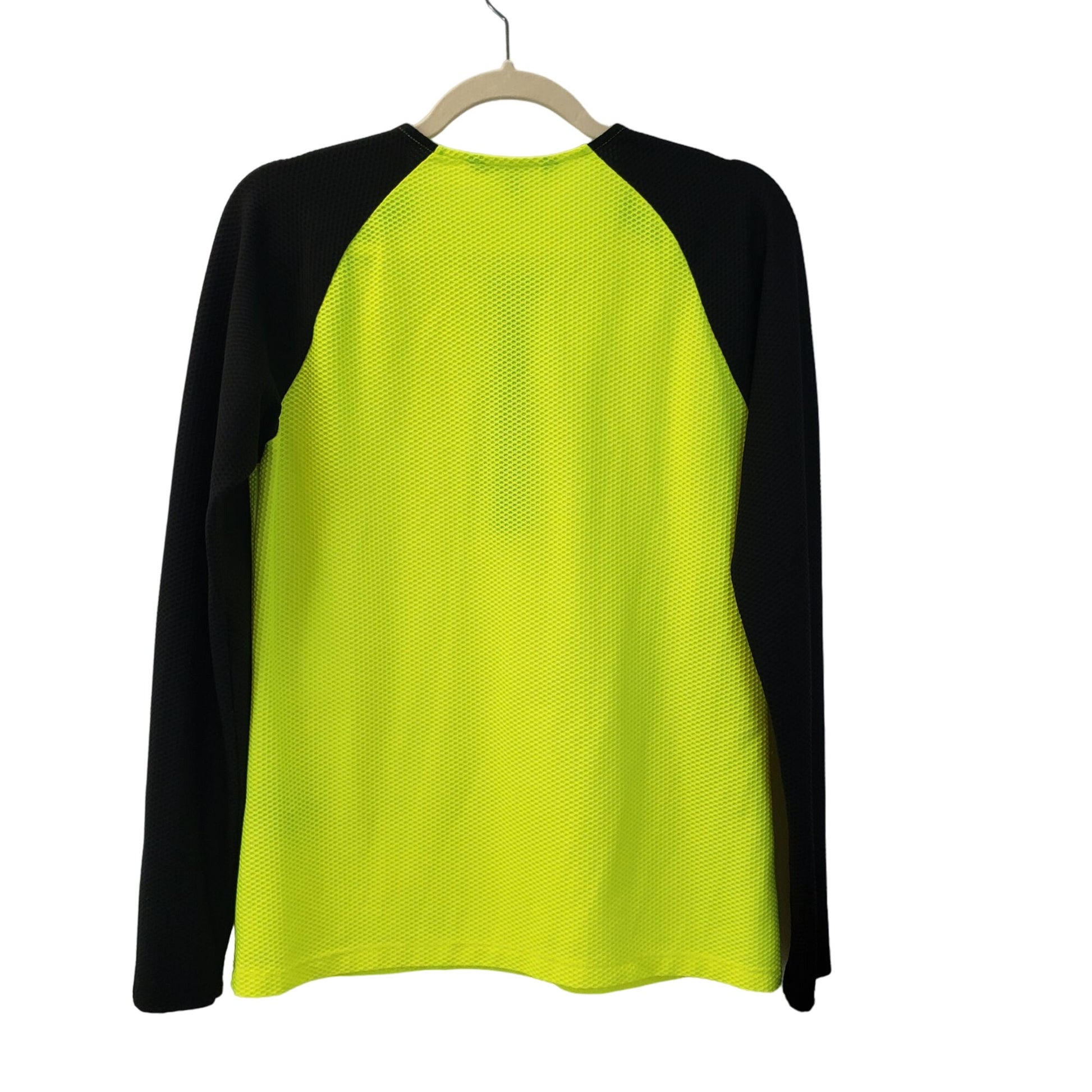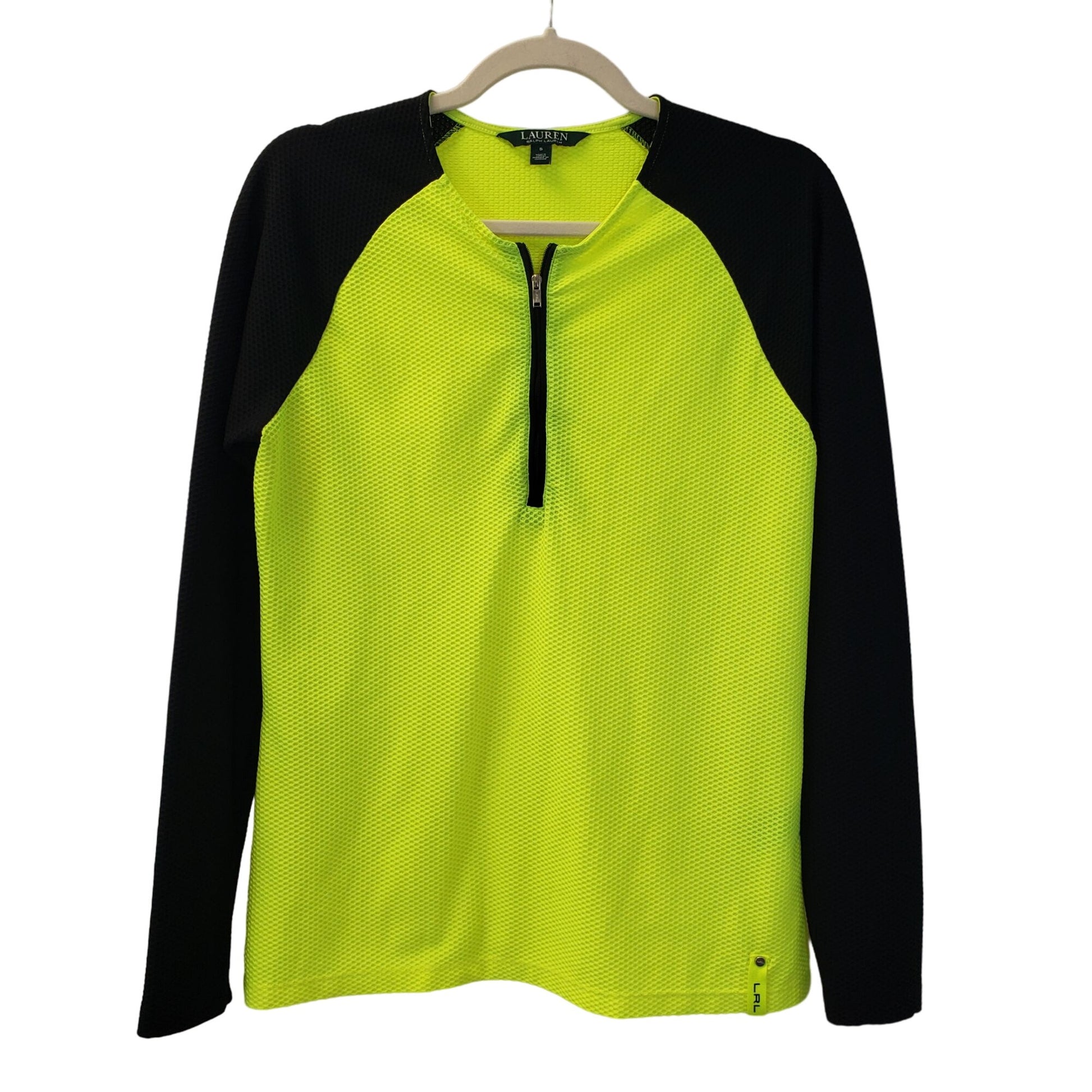 Really nice and lightweight quarter zip activewear jacket with a neon yellow and black color block design. Great piece to wear when it is darker out and great for any activity.