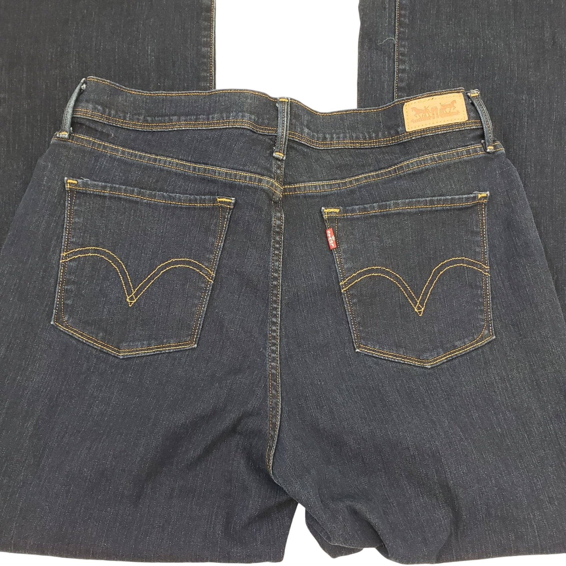 Darker wash bootcut jeans that are great to pair with boots or heels depending on the occasion. Button and zipper closure. 5 pocket design.