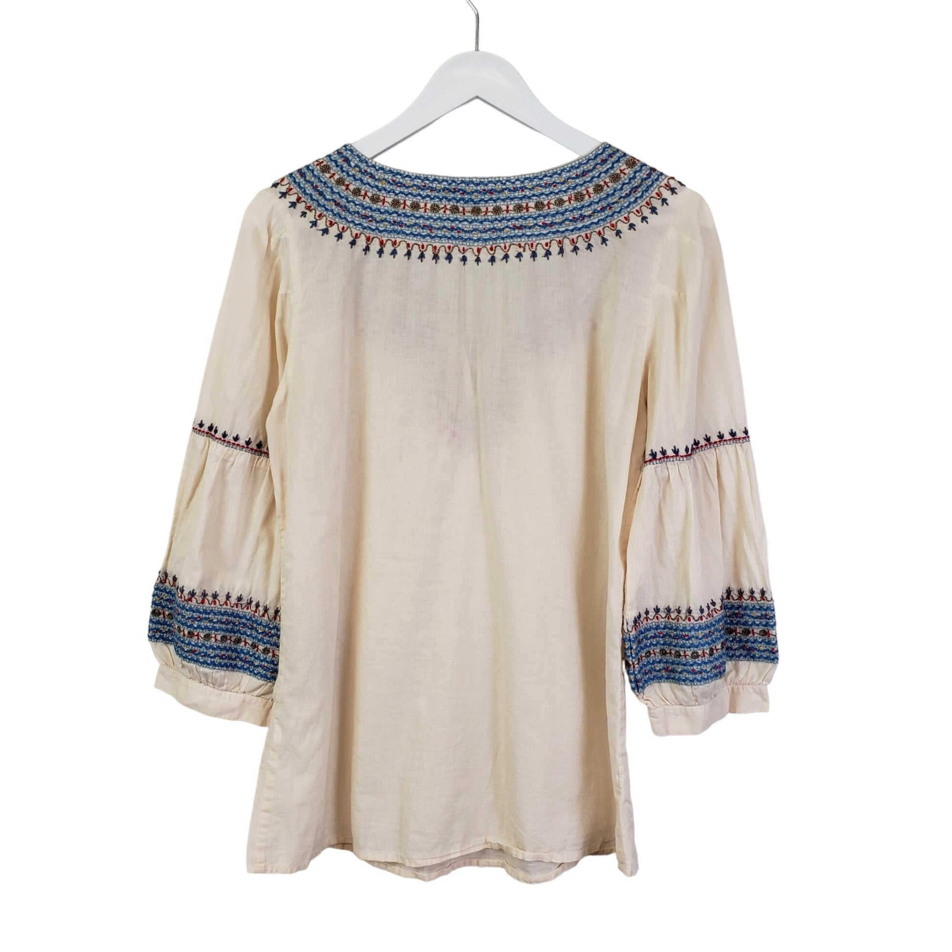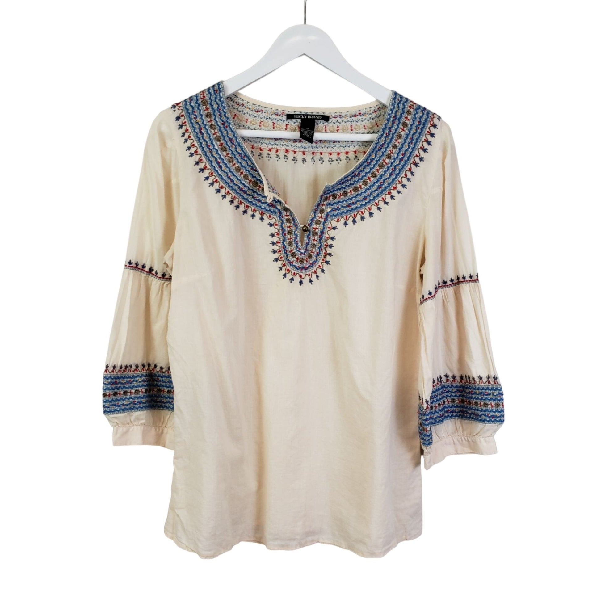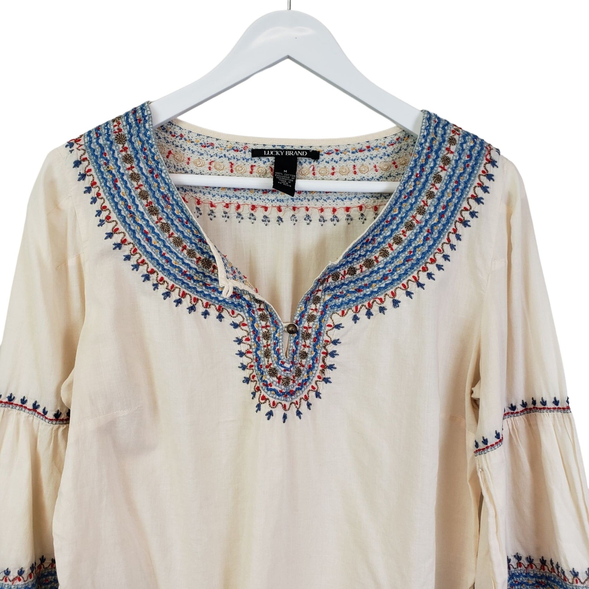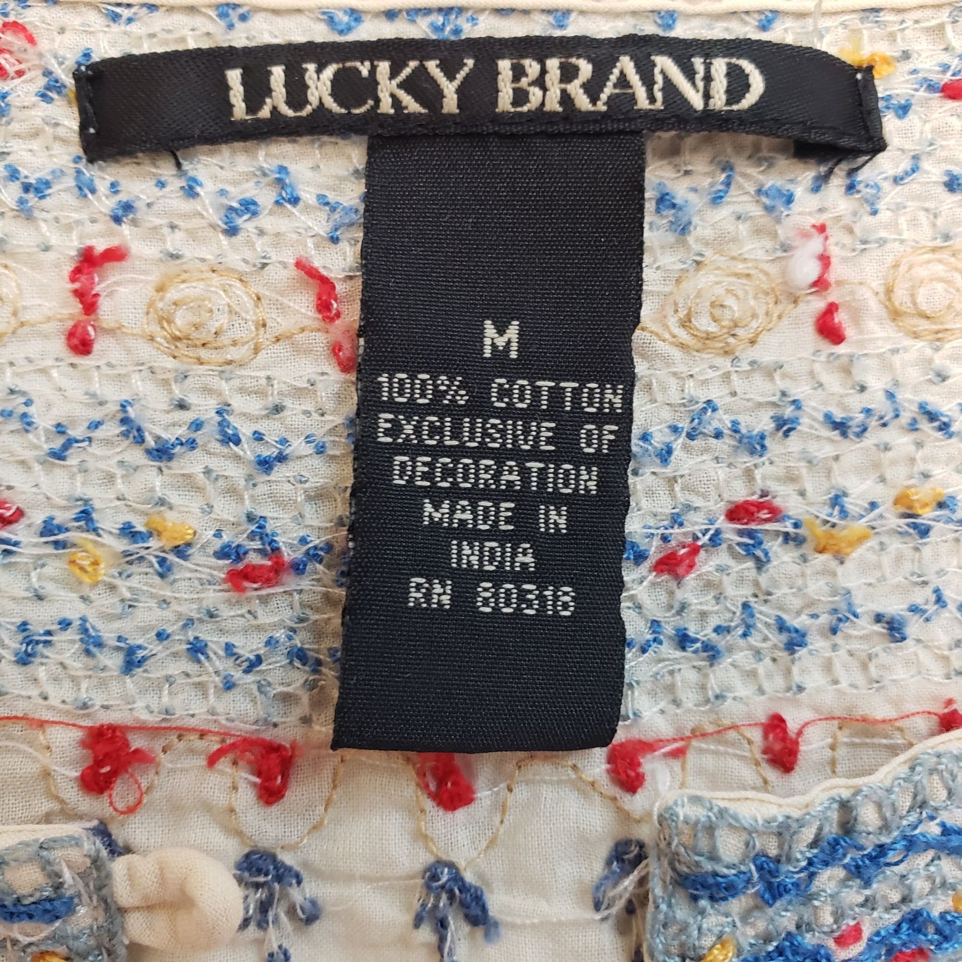 Lucky Brand Embroidered Boho Peasant Top Size Medium