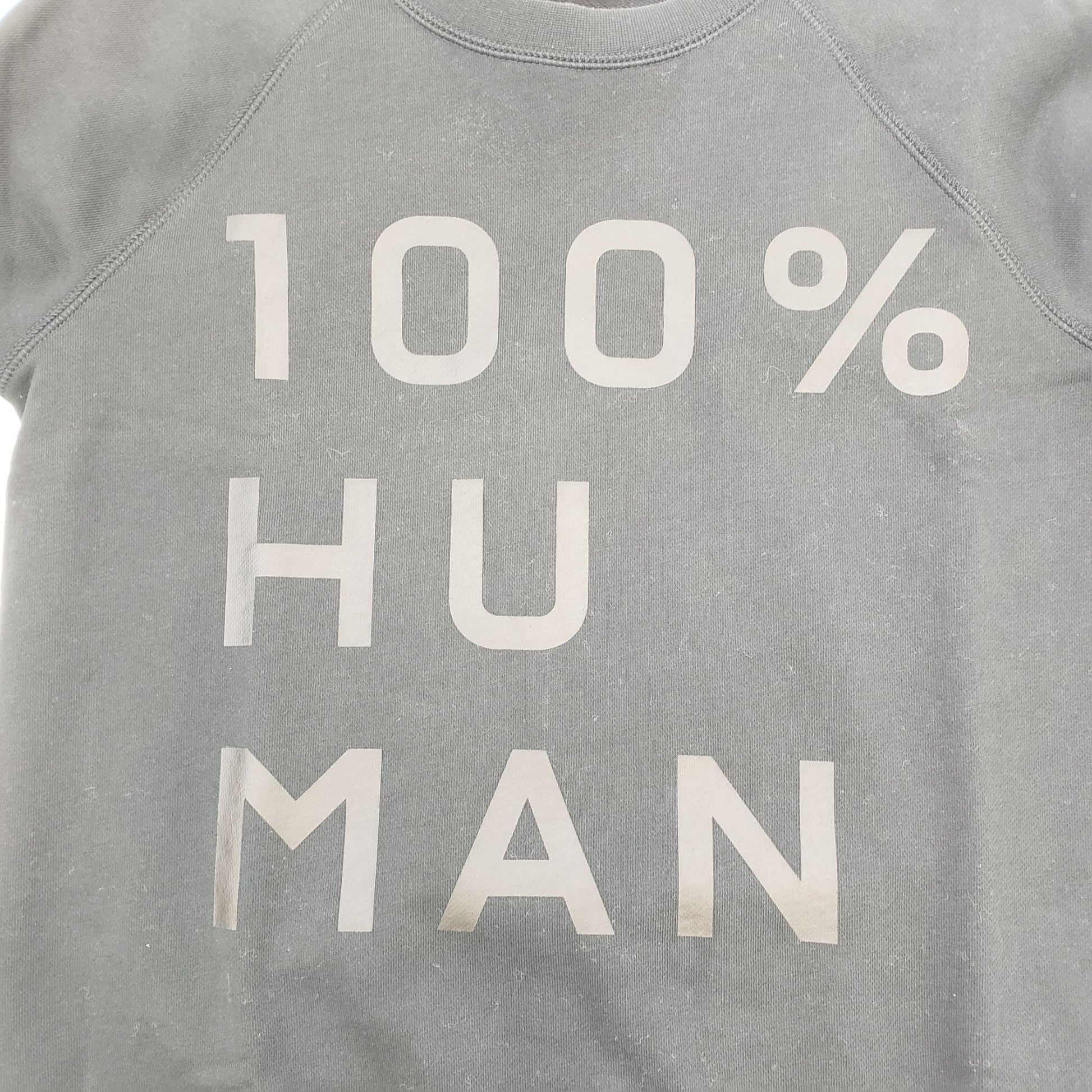 Really cute novelty crewneck sweatshirt that has 100% Human typography on the front. Pair with a button down shirt underneath and some jeans for a casual day.