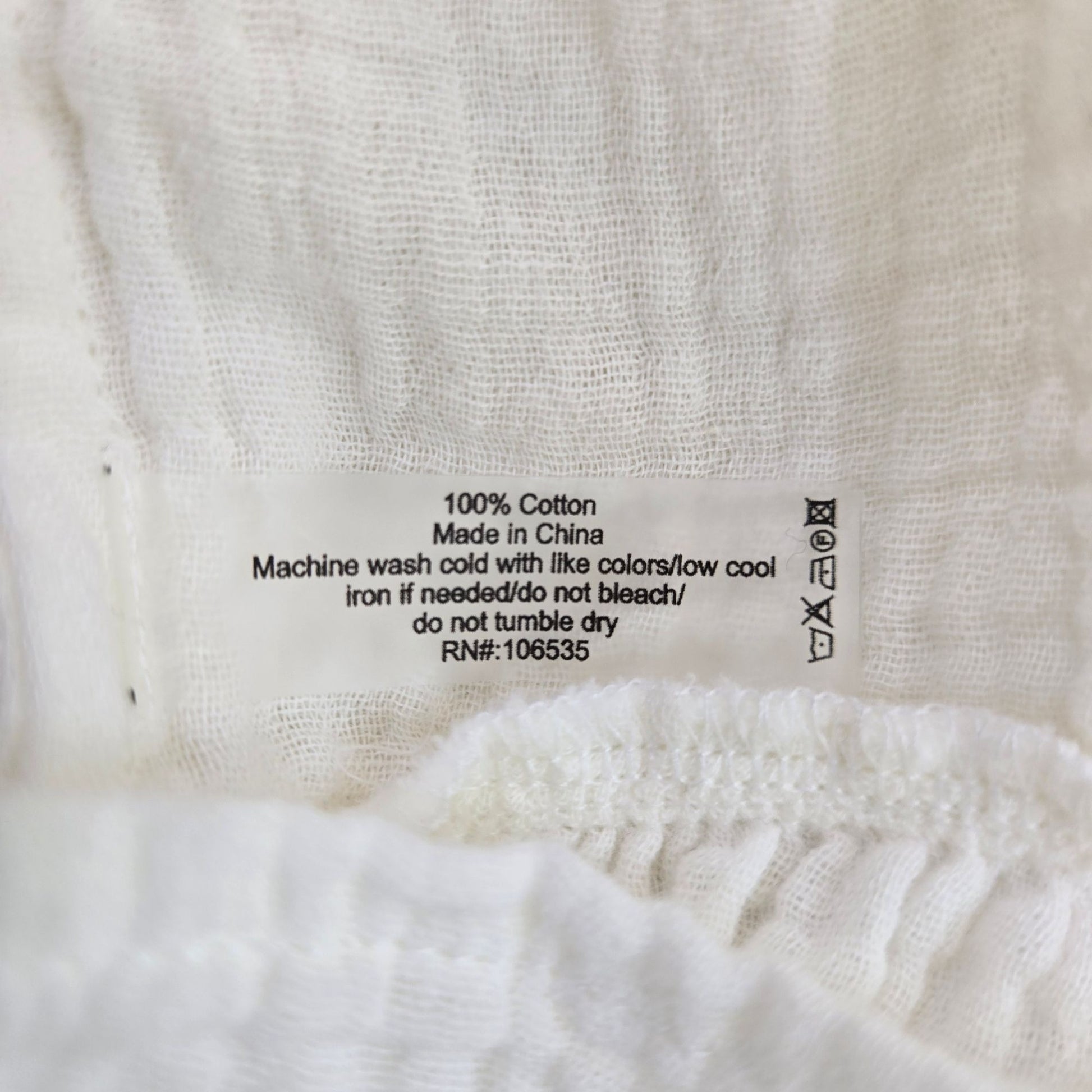 100% cotton gauzy tunic or mini dress that has a tiered hemline and large tassels at the neckline tie and at the hemline that can be tied together to close off the bottom hemline. Light and airy, great for a summer day. Sleeves are larger but not quite a balloon style. Side pockets.