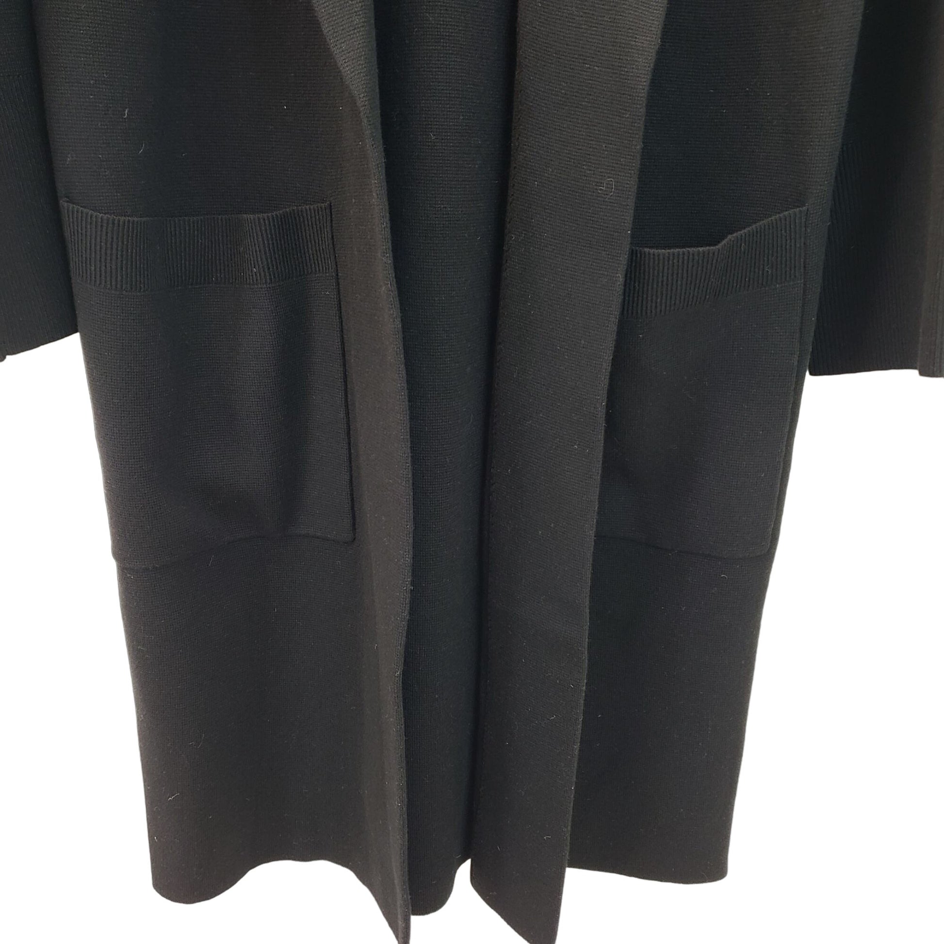 Heavier weight, substantial longline open cardigan sweater that is a great alternative to a jacket in cooler weather. Pockets at the front. Wear for work or for a more casual day shopping.