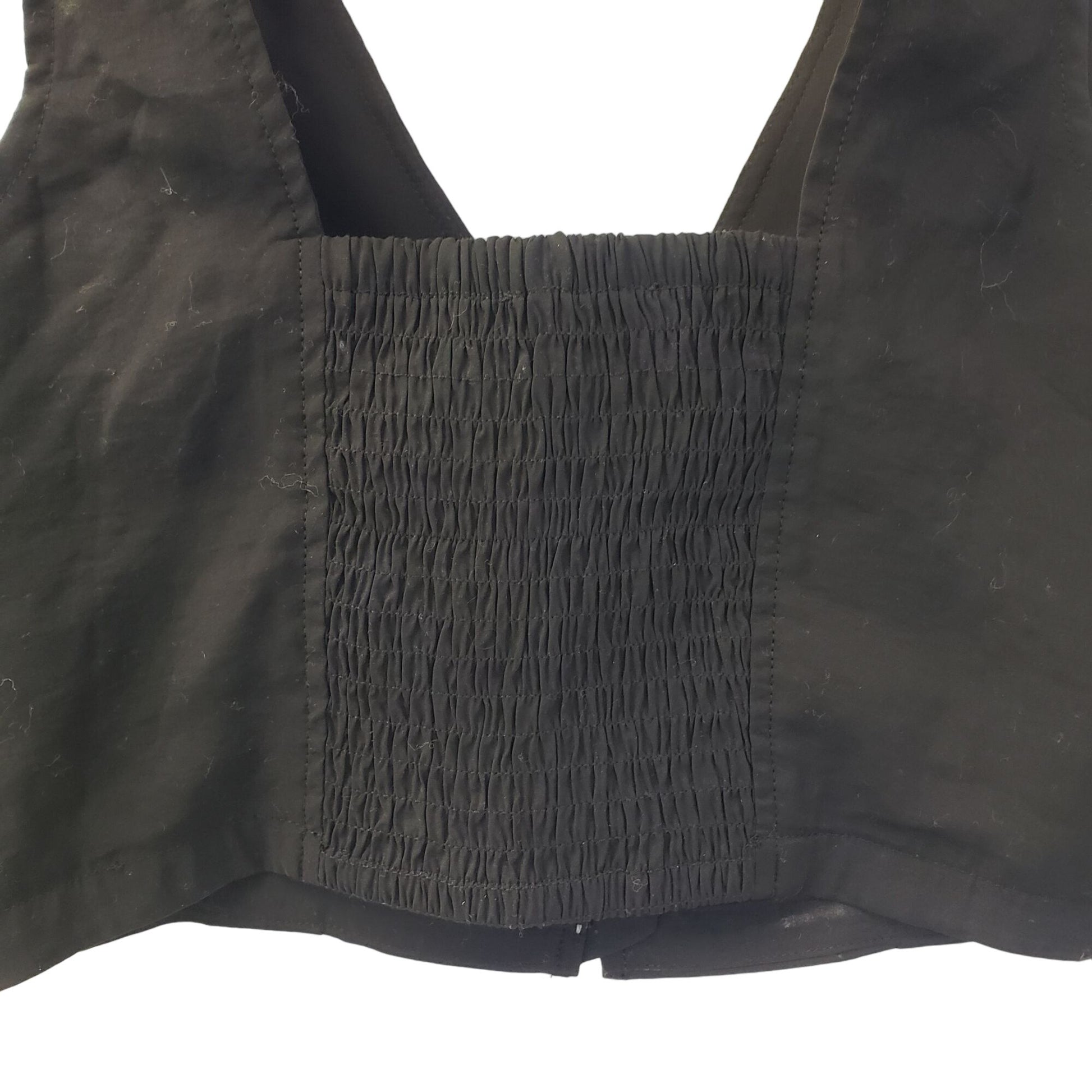 Adorable button front crop top that has thicker straps and smocking at the back. Great piece for the summer to pair with jeans shorts or high rise trouser pants.