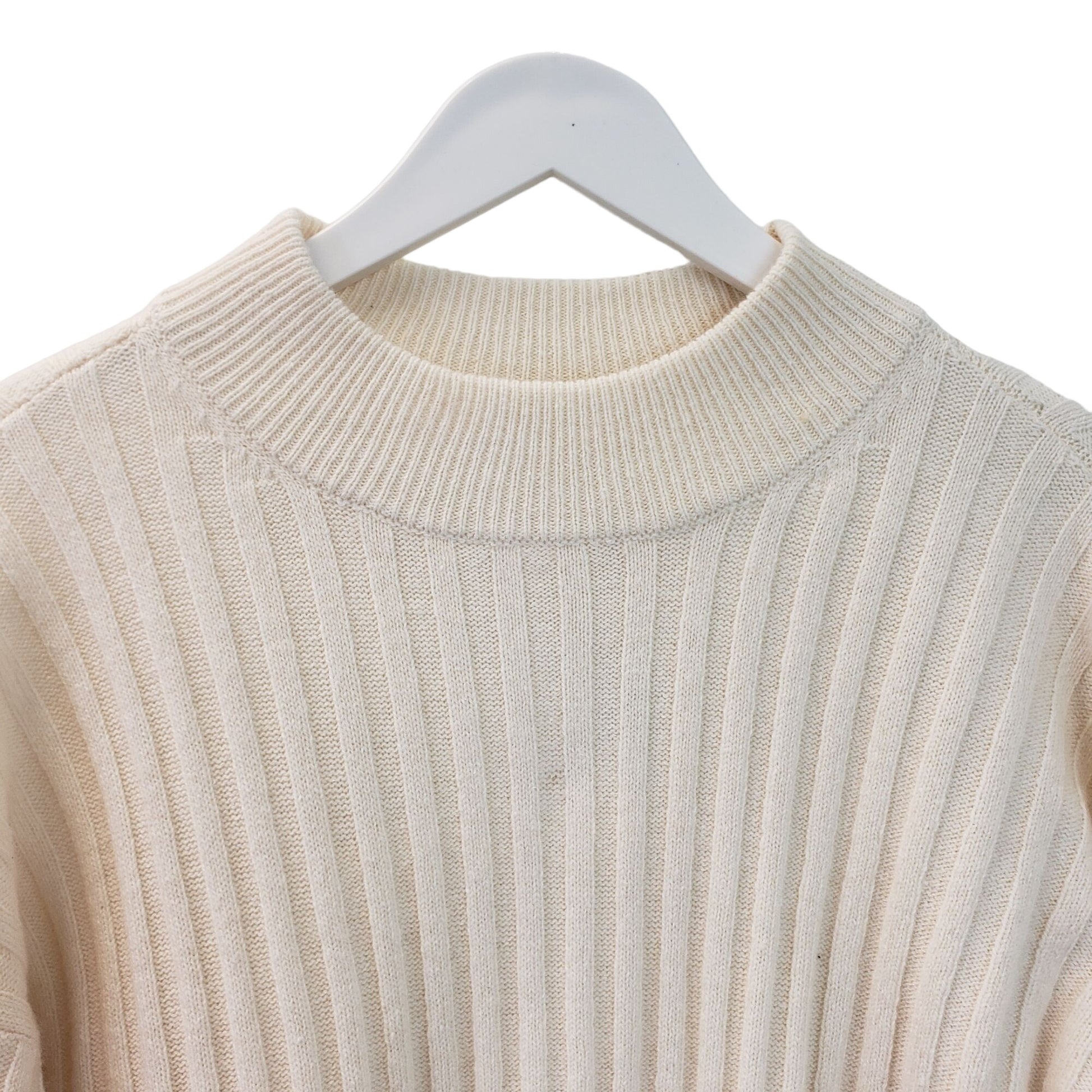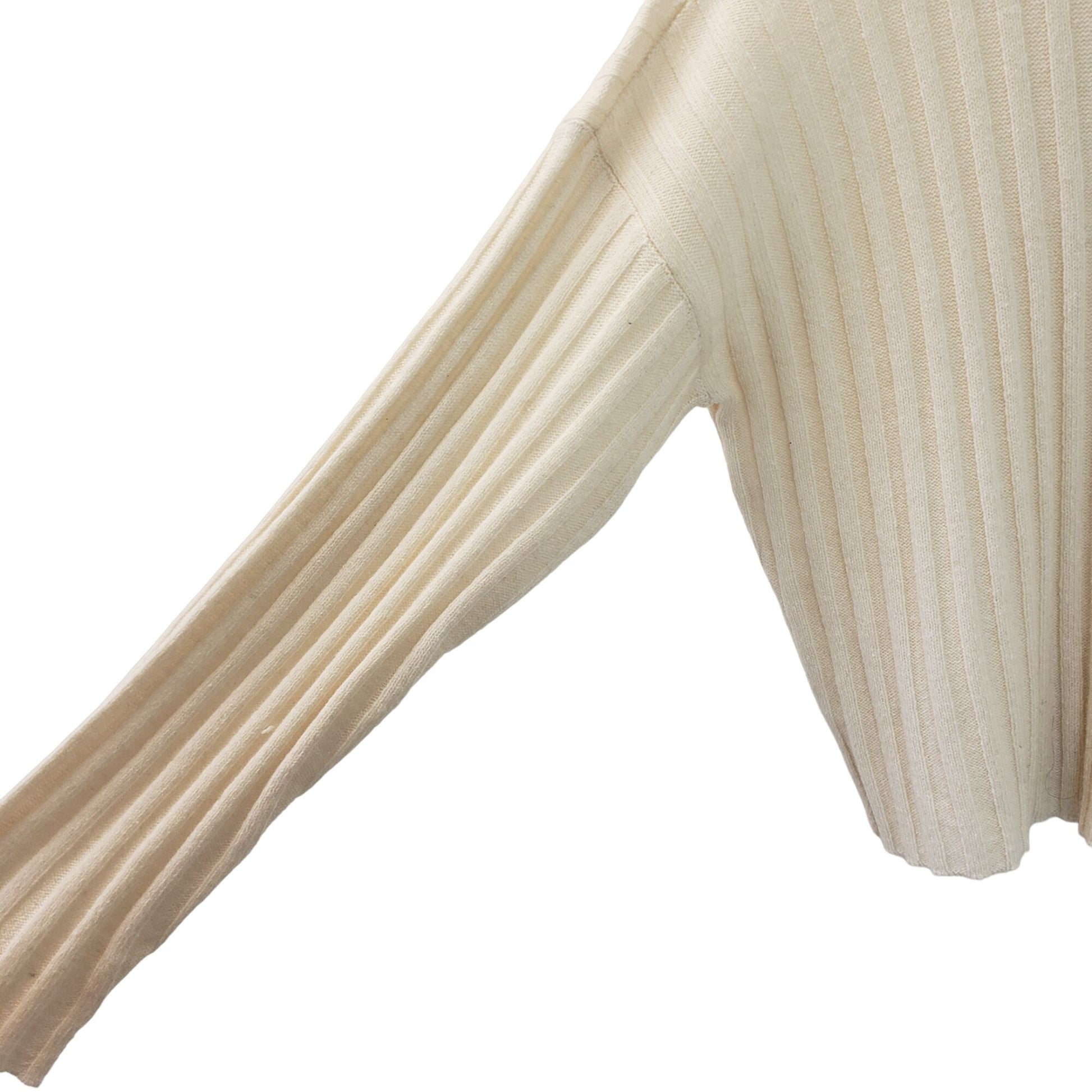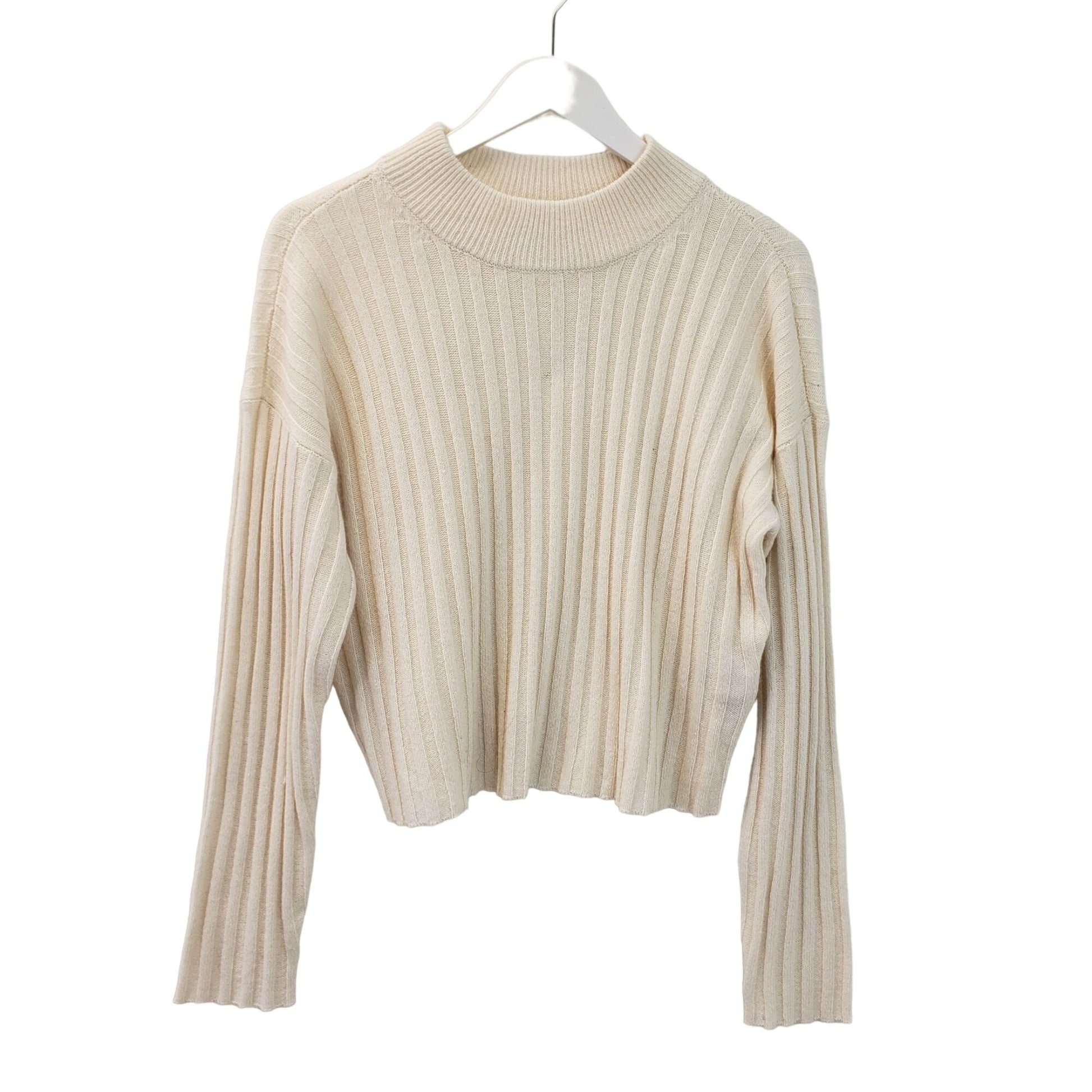 Beautiful cream color ribbed mock cropped sweater that is a great piece to wear alone or layer with a button down shirt underneath. Nice career piece or wear for a more casual day.