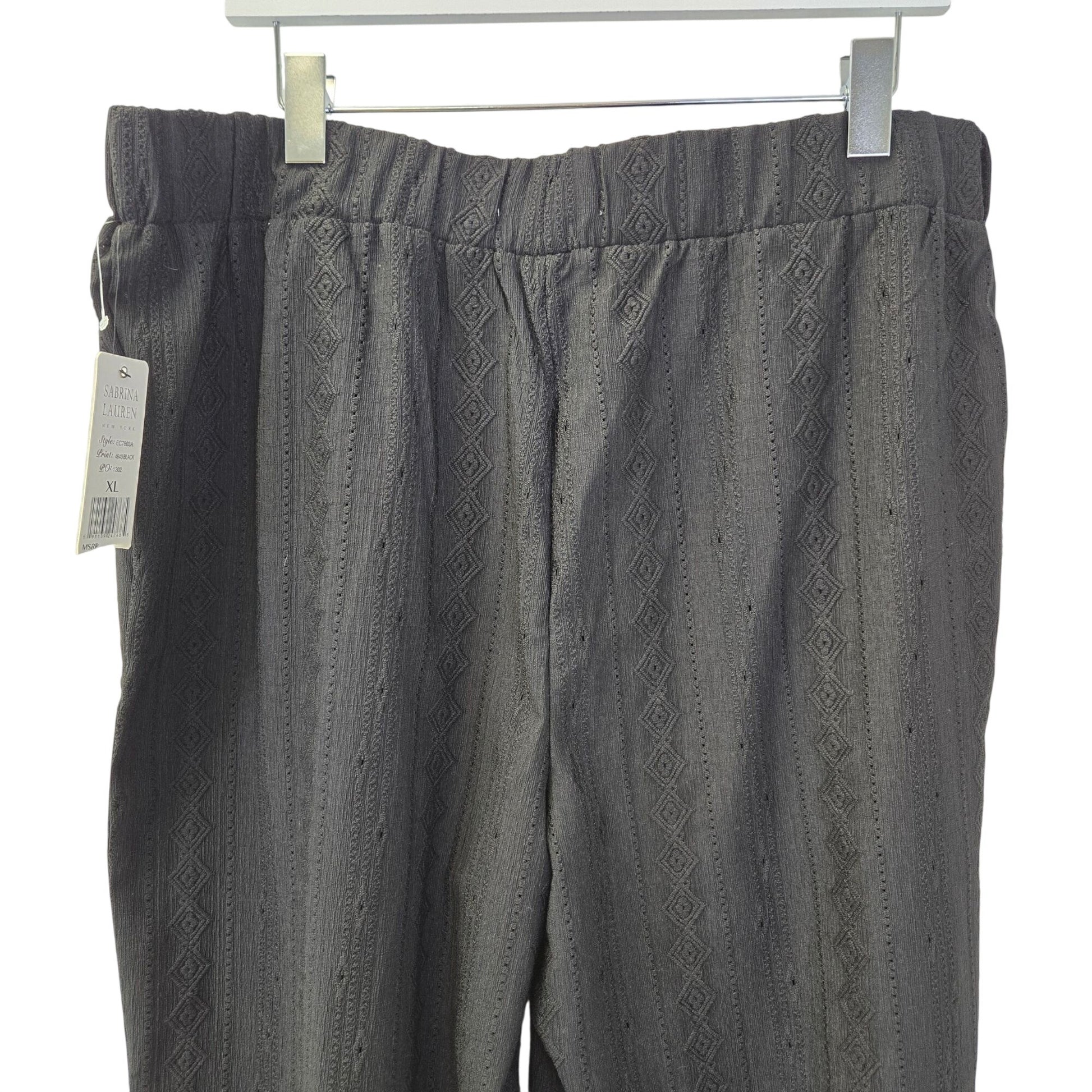 NWT Sabrina Lauren Diamond Embroidered Wide Leg Pull On Pants Size XL