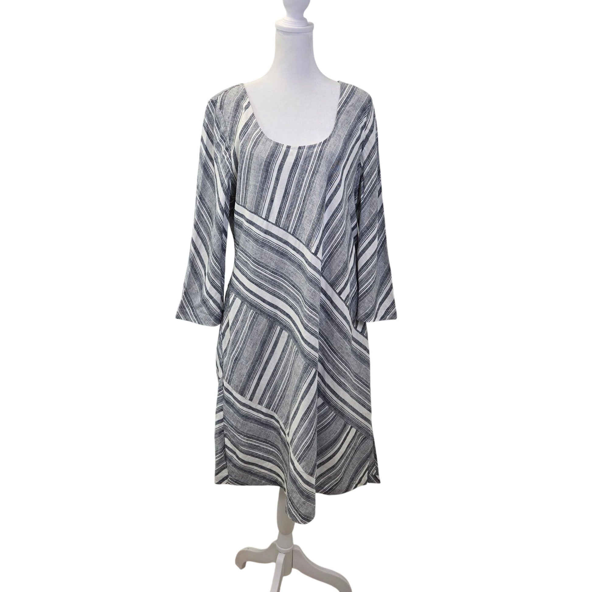 NWT Soft Surroundings Sonja Linen Blend Striped Dress Size Medium