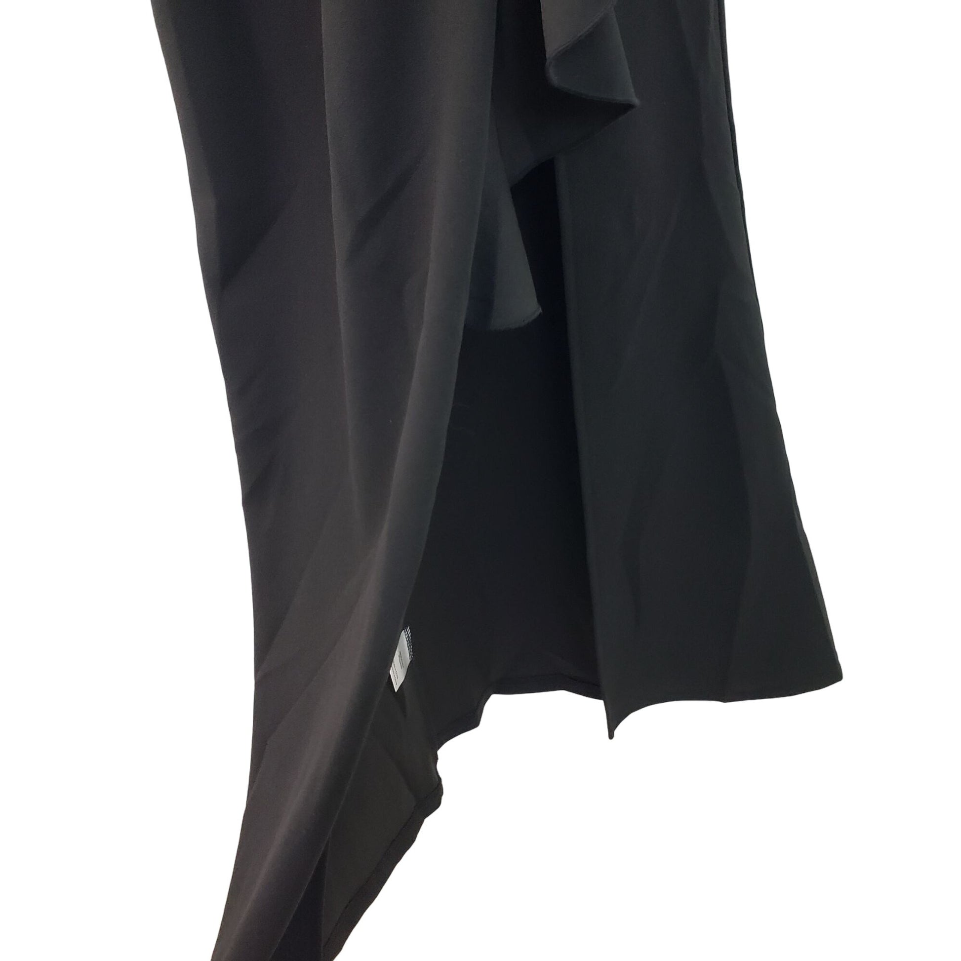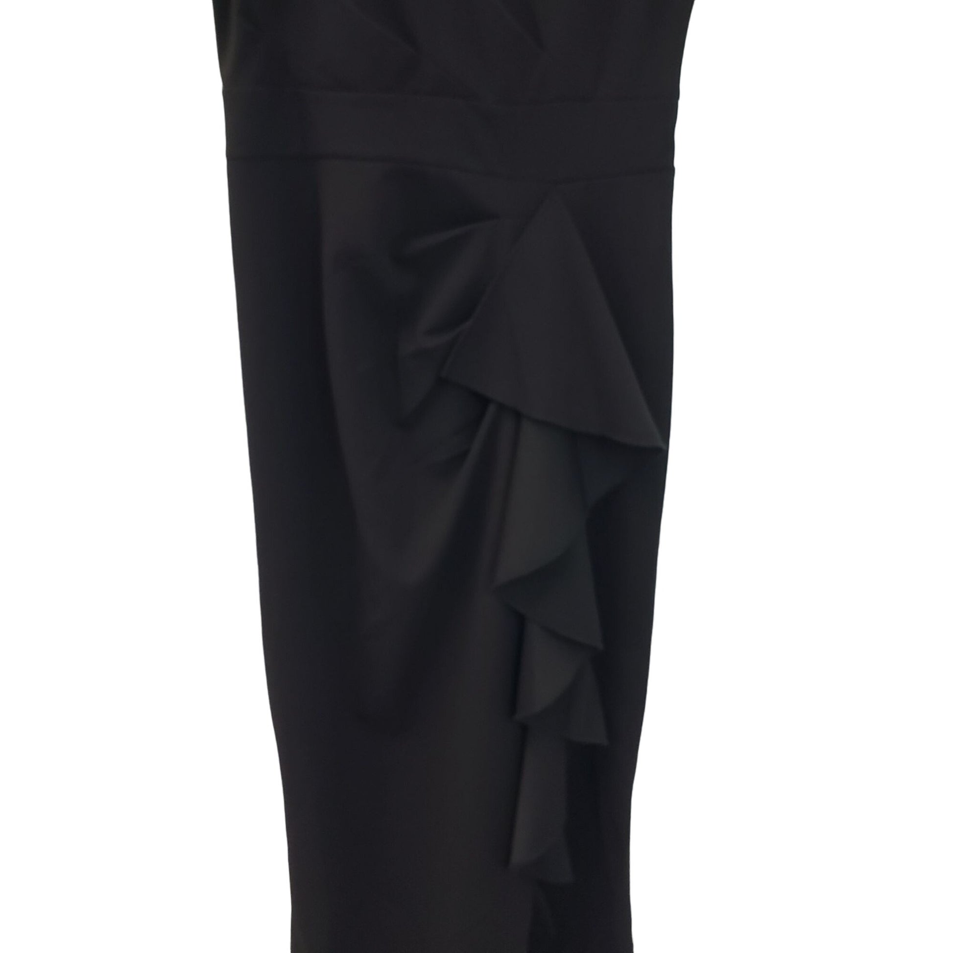 Gorgeous mermaid style full length dress that has a cascading ruffle down the front, one ruffle sleeve and a long slit up the front. Back zipper closure. Great piece for a formal or special occasion.