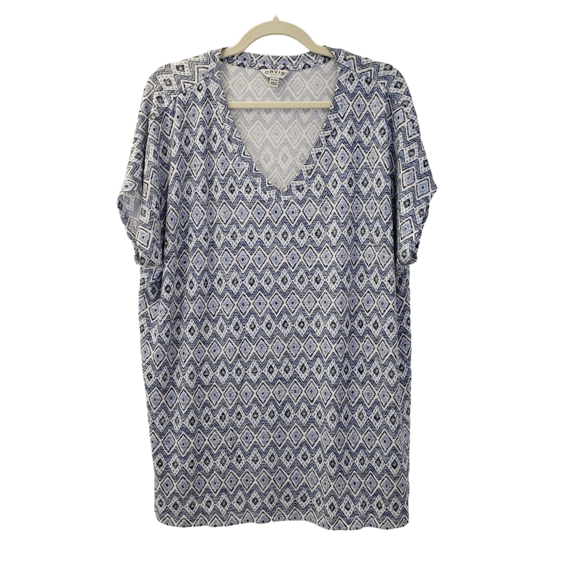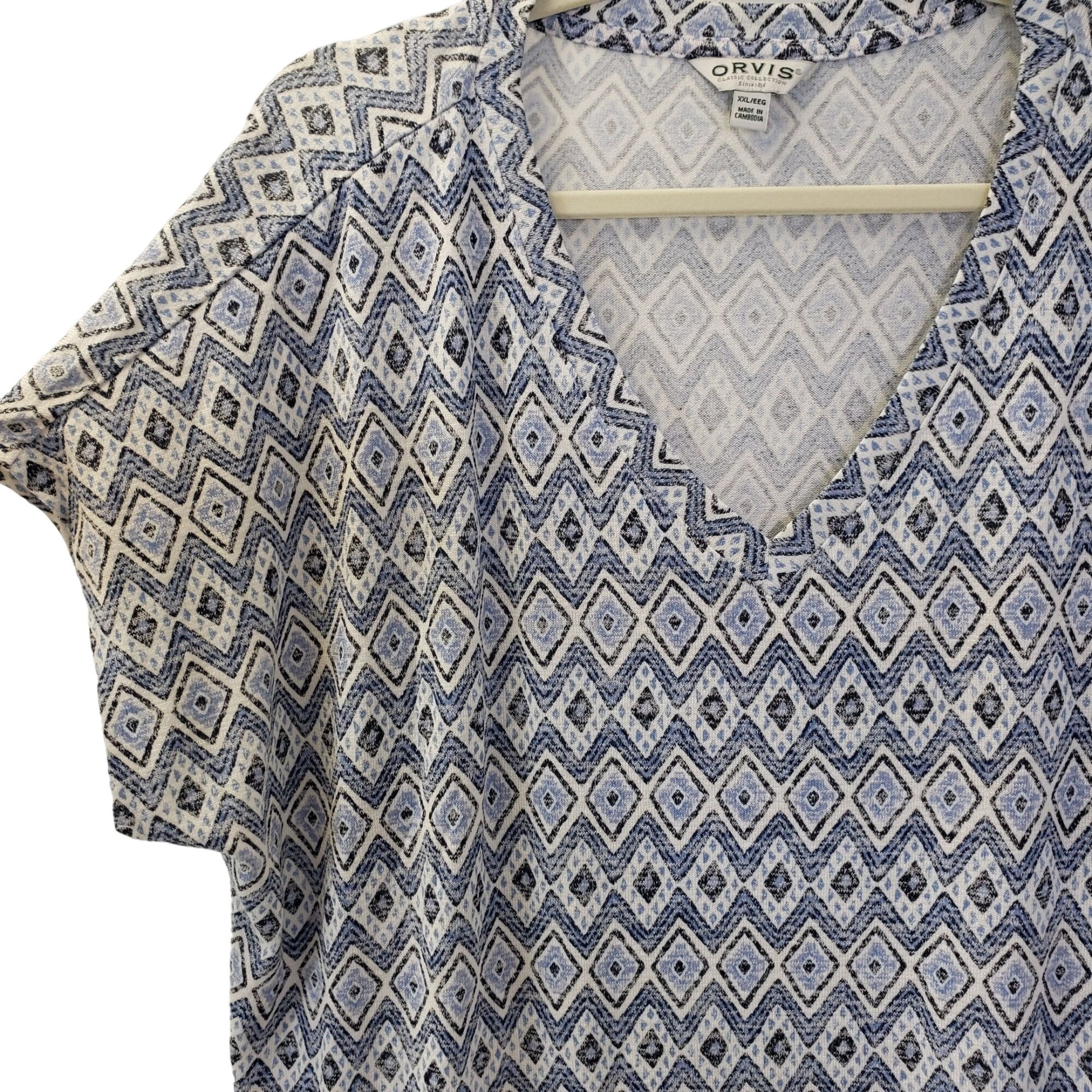 Orvis Diamond Print Cap Sleeve V-Neck Top Size XXL