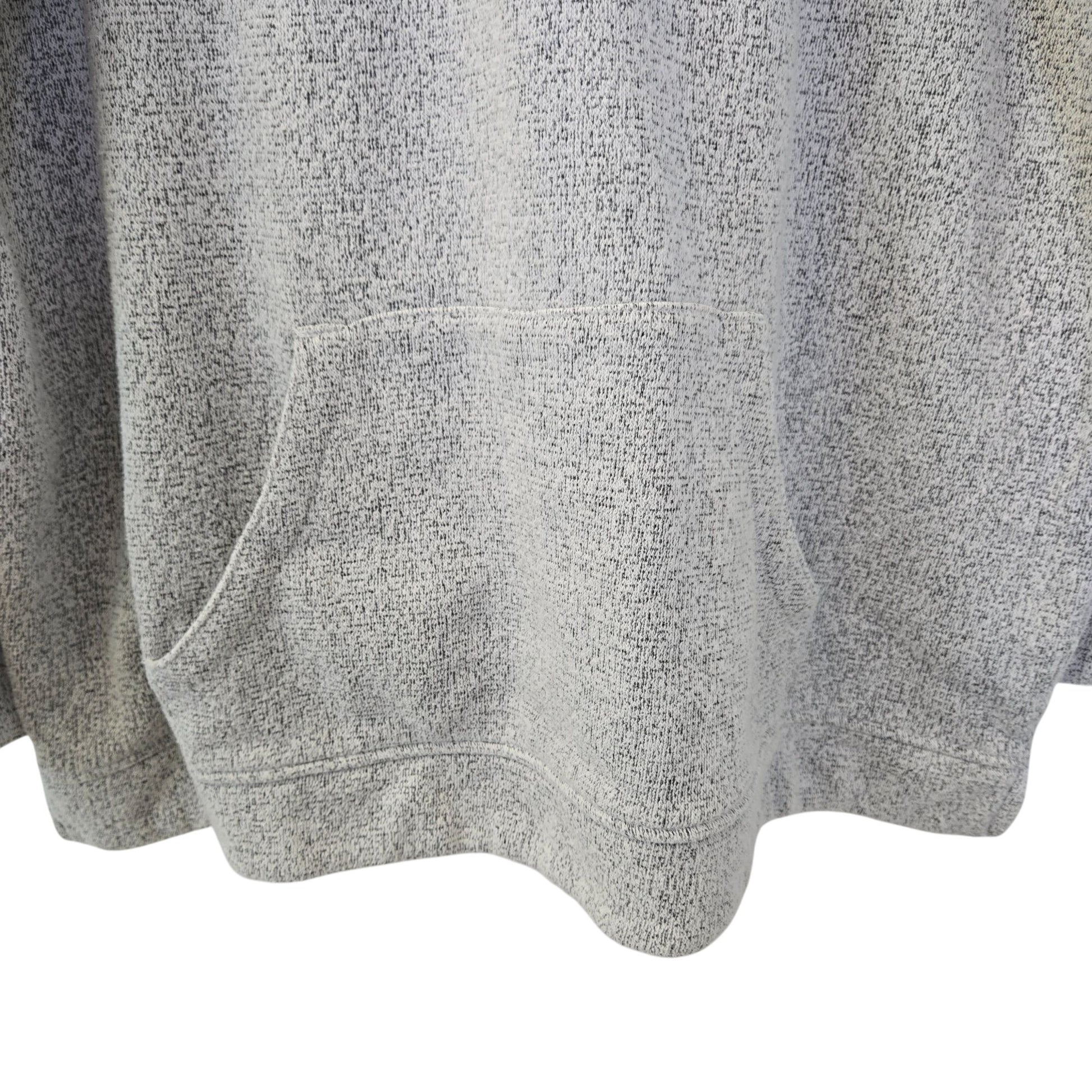 Nice and soft quarter button sweatshirt that has a kangaroo pocket at the front. The color is a heathered white and gray.