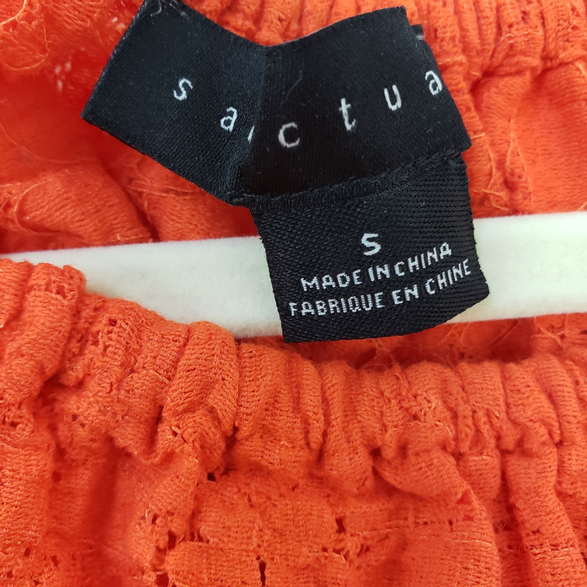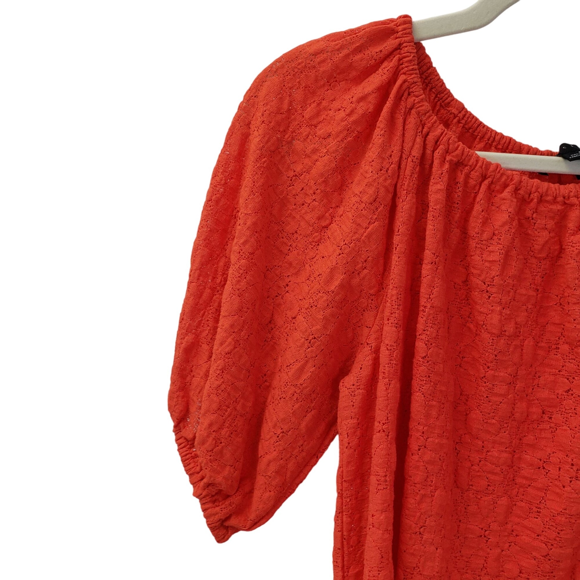 Really cute floral lace top that is perfect to create that summer Boho vibe. The sleeves are a little puffy with elastic closure. Also there is elastic at the neckline. Pair with shorts or jeans.