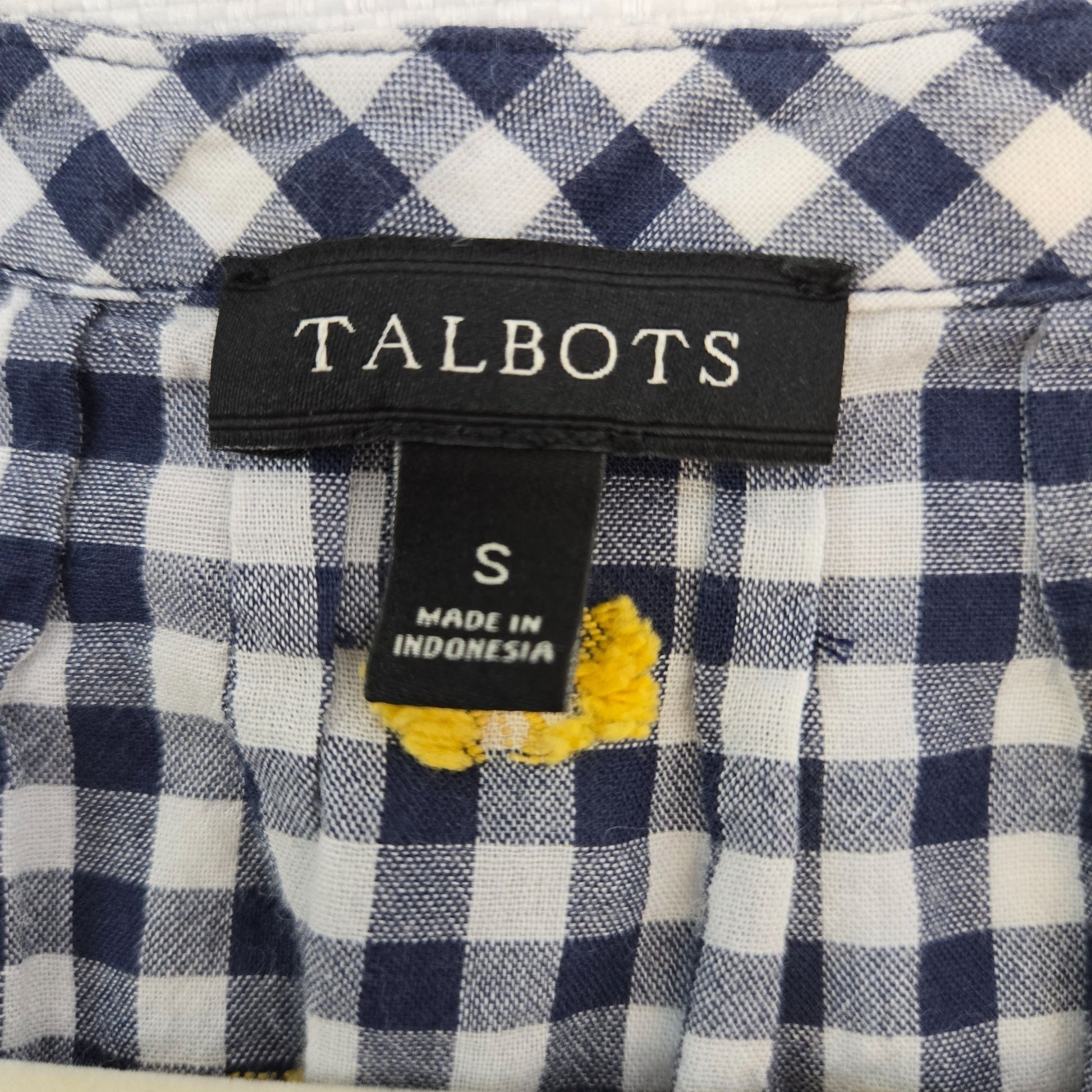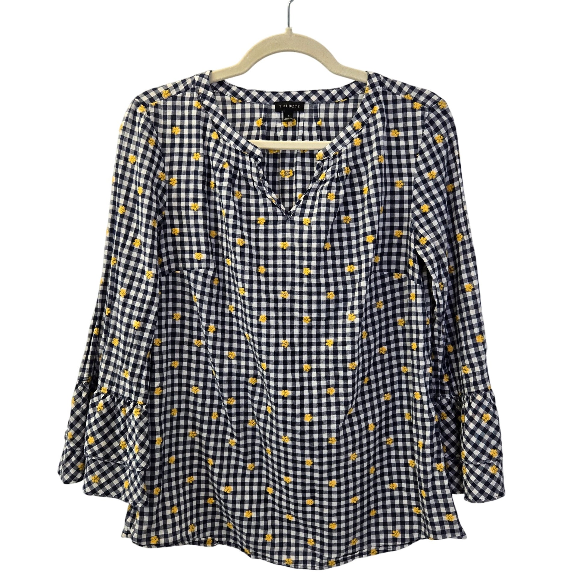 Talbots Floral Embroidered Gingham Print Bell Sleeve Popover Top Size Small