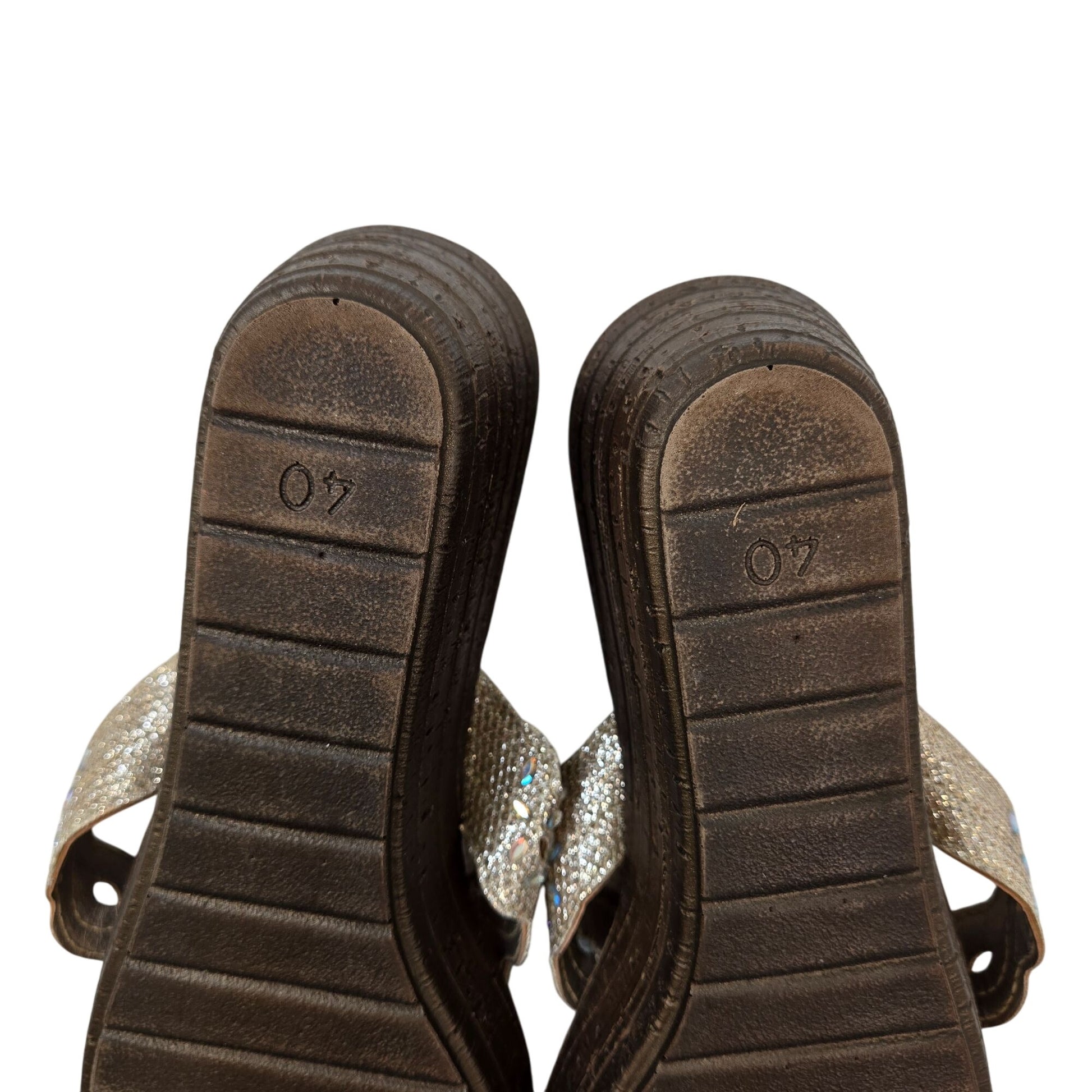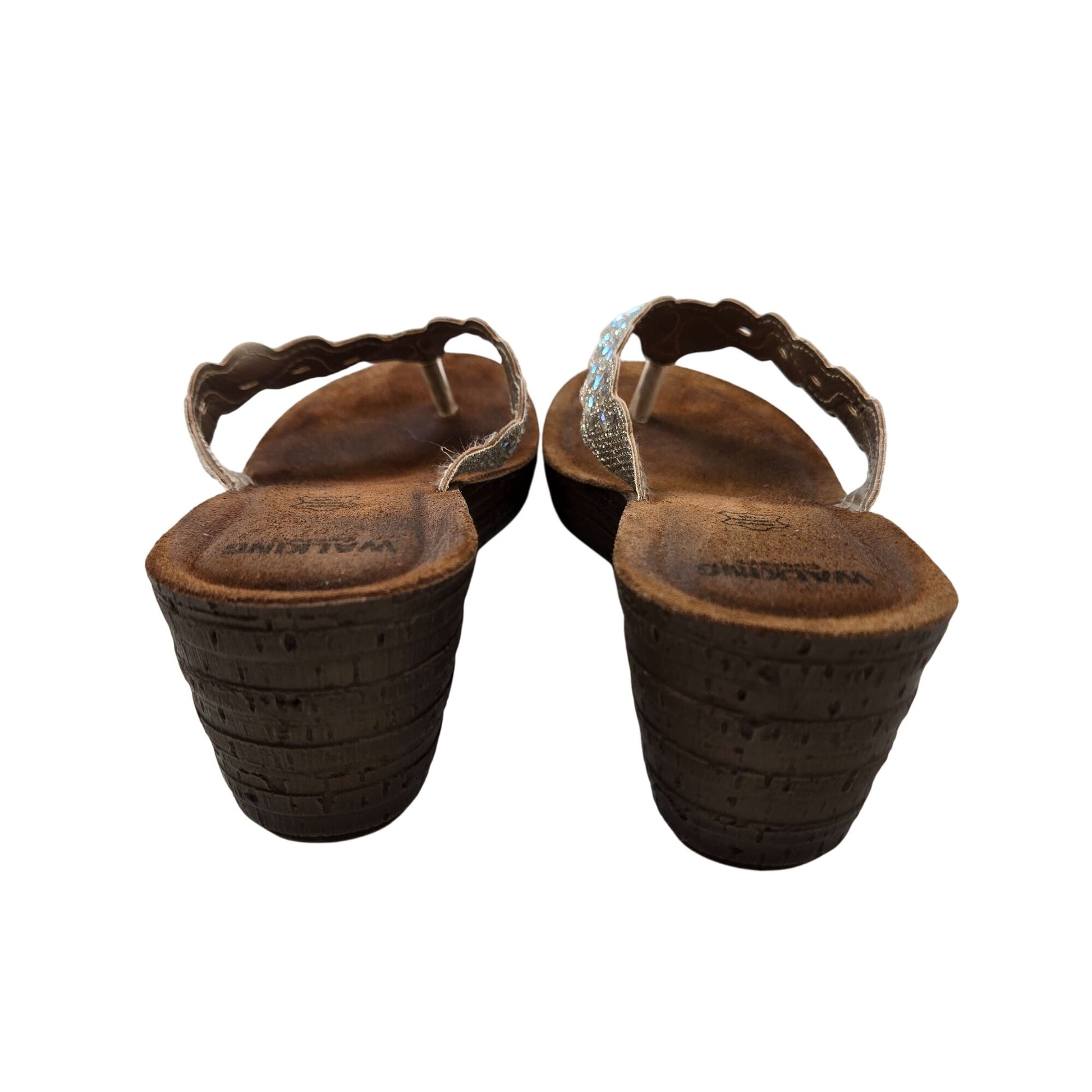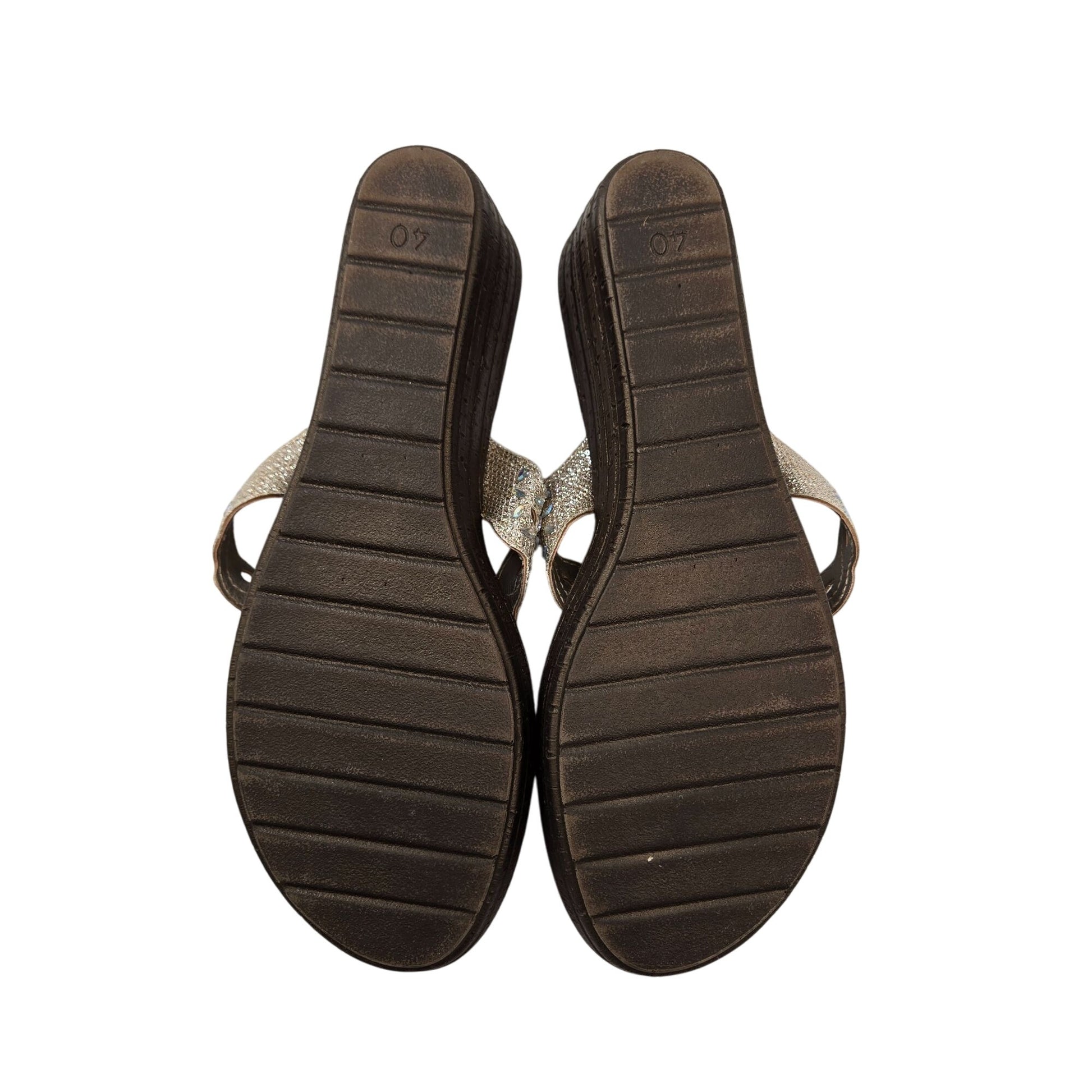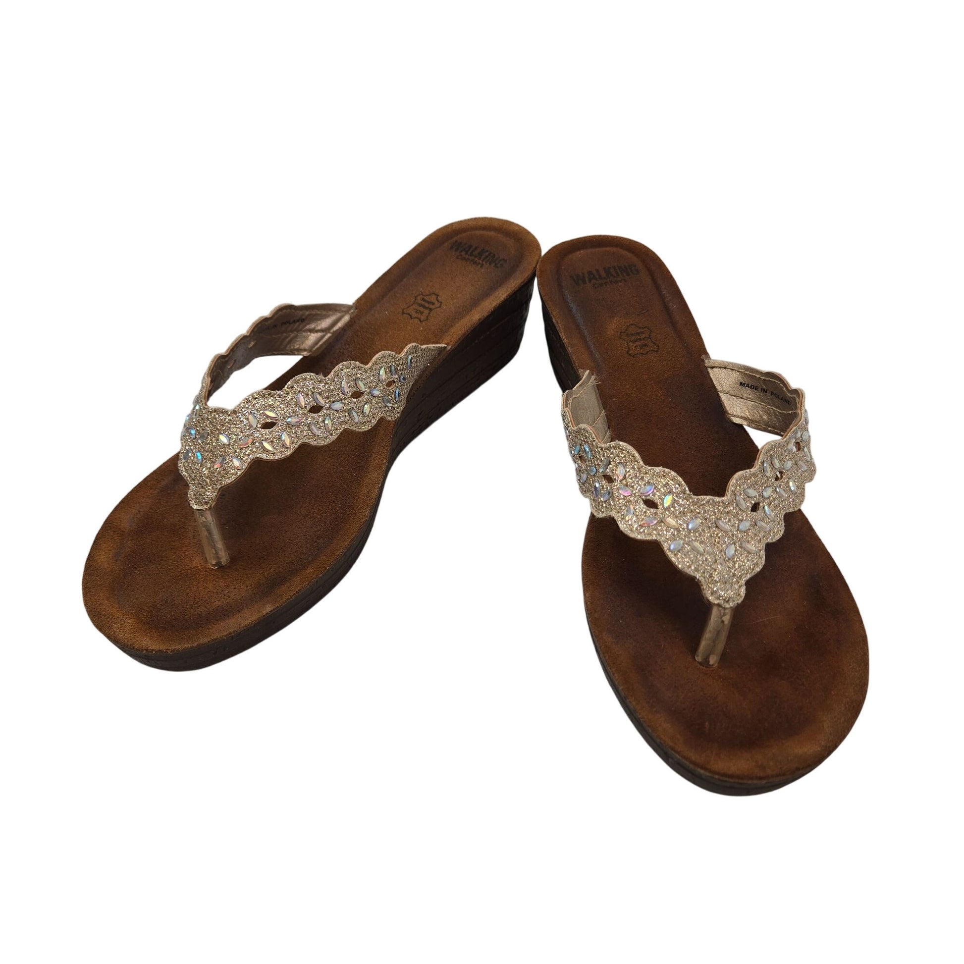Walking Comfort Wedge Scalloped and Beaded Thong Strap Sandals Size 40/US 9