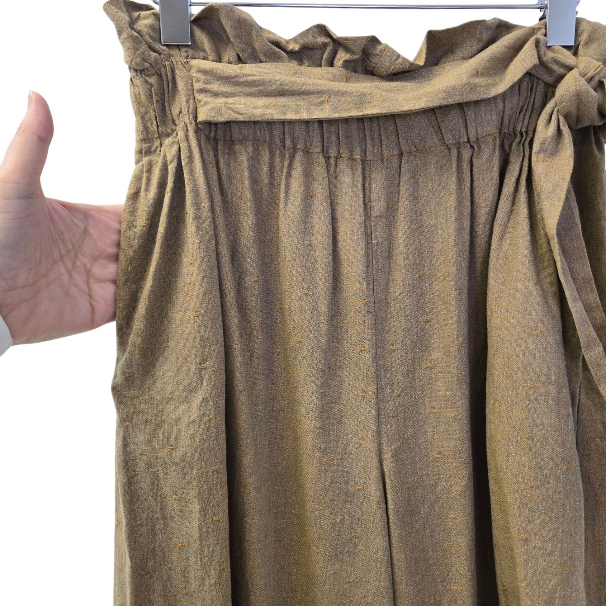 Wayward Fancies eShakti Cotton Wide Leg Paper Bag Waist Pants Size Large